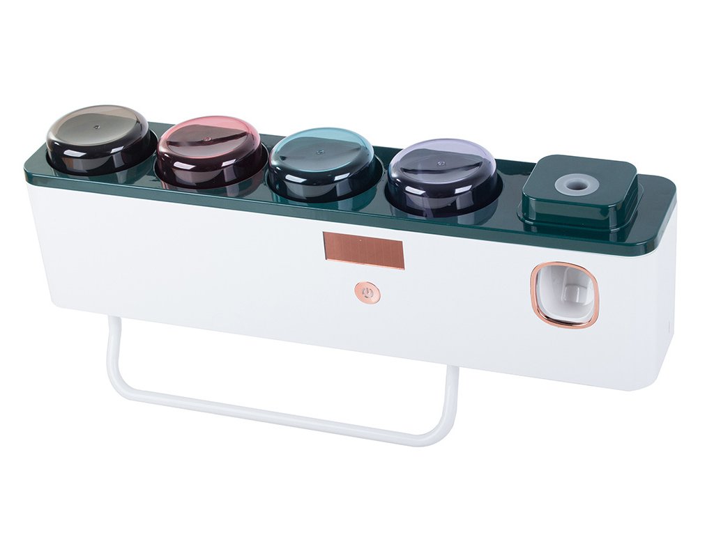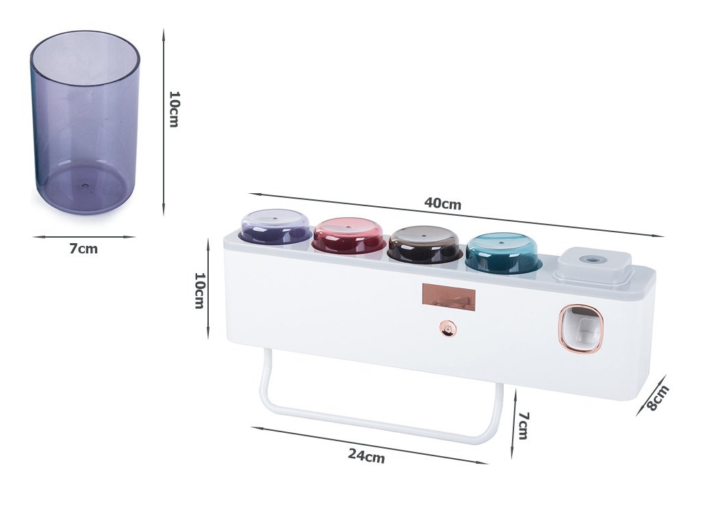 Součástí organizéru je dávkovač zubní pasty a 4 plastové kelímky o objemu 300 ml.