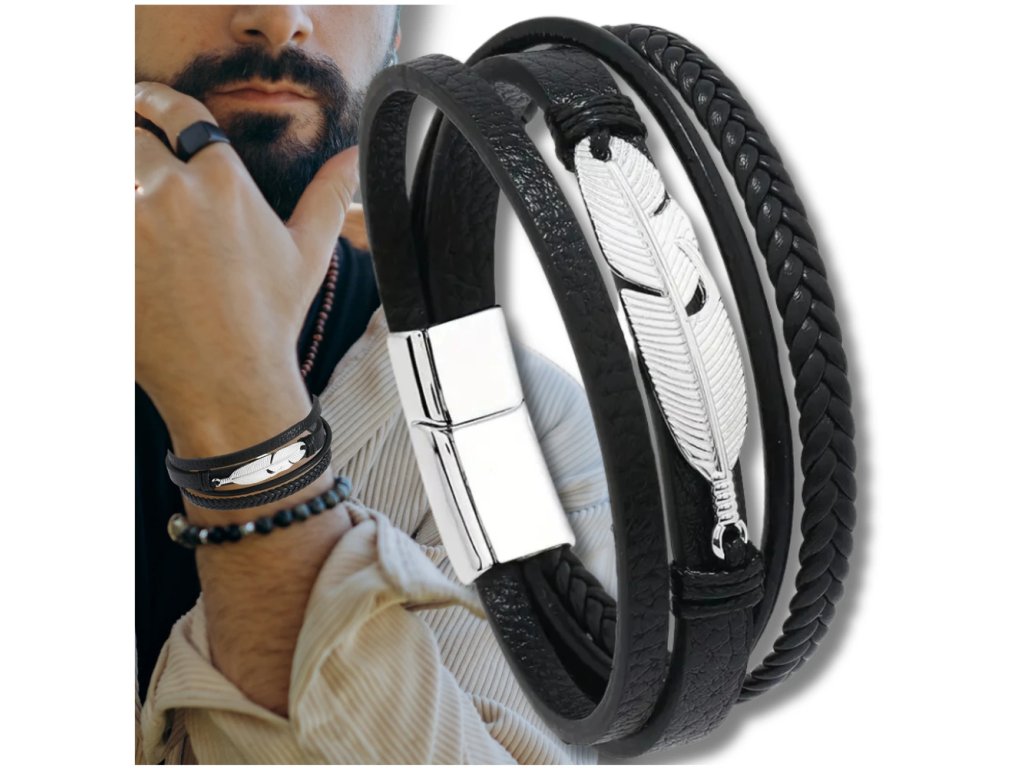 Tato jedinečná náramek je skvělým doplňkem pro každého muže, který chce vyniknout. Vyrobena z kvalitní ekologické kůže a zdobená stříbrným perem, náramek představuje výjimečný kousek, který dodá šmrnc každému outfitu. Ať už se chystáte na běžný den nebo elegantní večírek, tato náramek bude vaším nezbytným doplňkem.