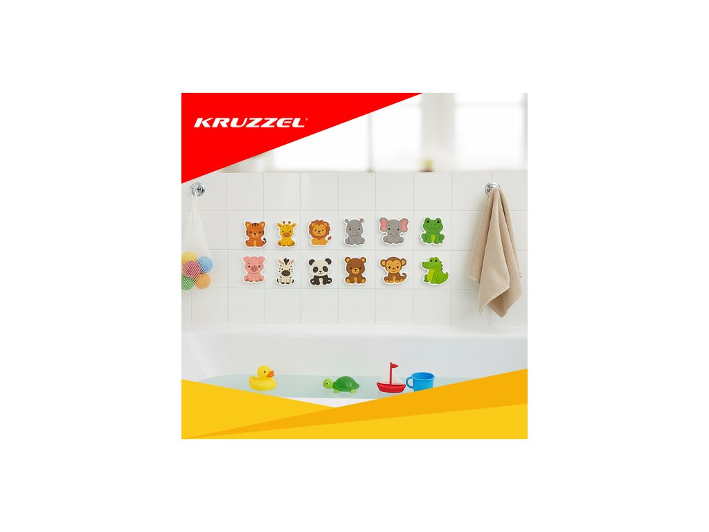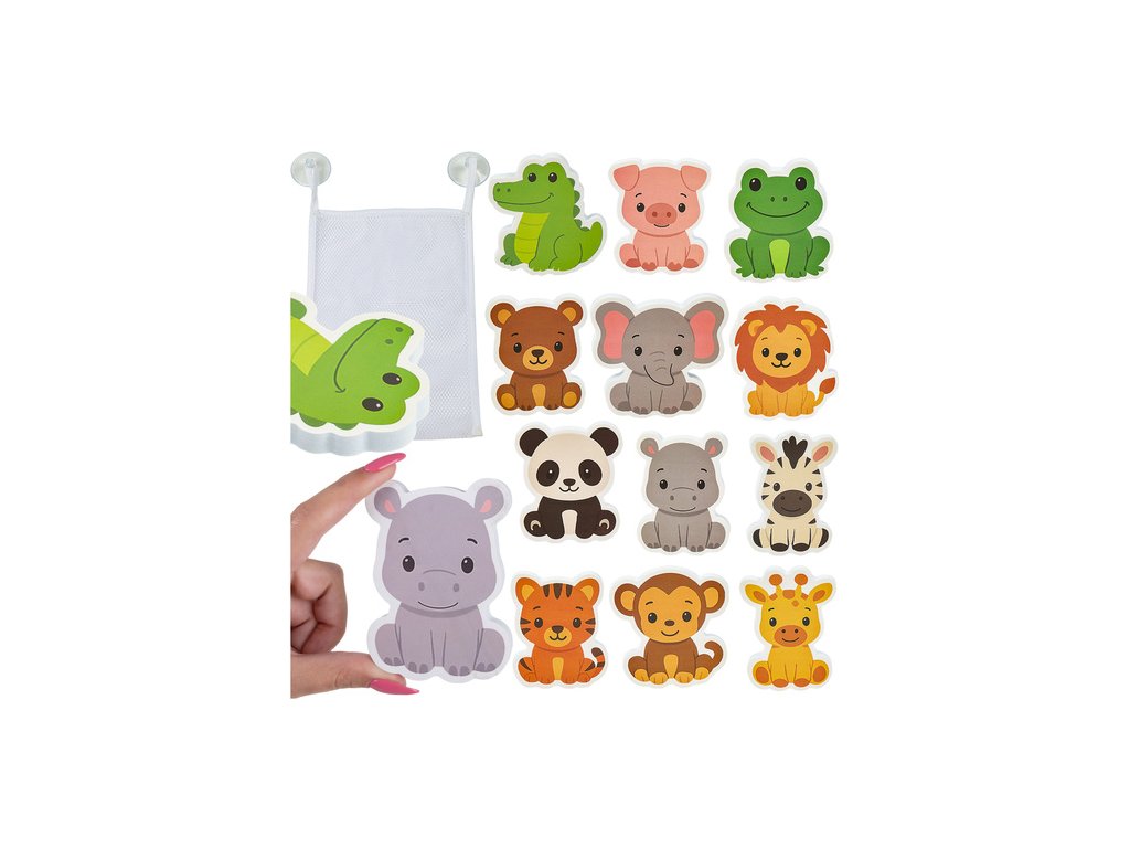 Tato sada 12 barevných pěnových hraček promění koupání v zábavnou i poučnou zábavu. Zvířátka se přilepí k vaně a dlaždicím a po hraní se umístí do přísavky pro rychlé uschnutí a uklizenou koupelnu.