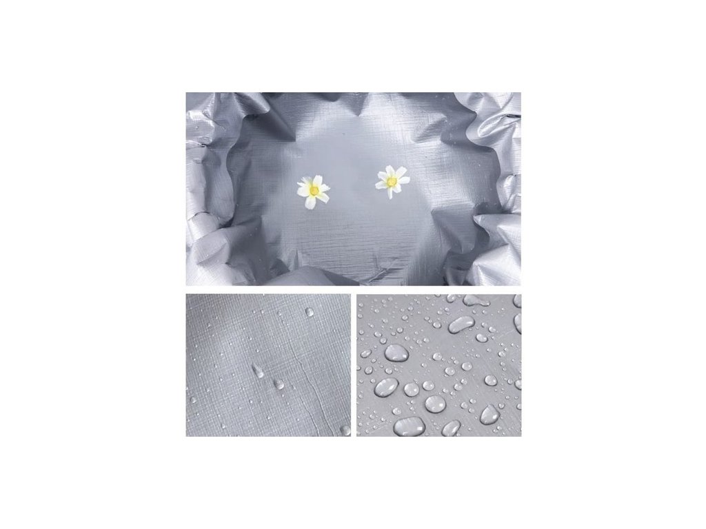- OBOUSTRANNÝ POVRCH - plachta je oboustranná, což znamená, že ji lze použít na obou stranách. Je k dispozici ve stříbrnošedé barvě , která mu dodává estetický vzhled a zvyšuje všestrannost použití . Okraje jsou vyztuženy speciálním chráničem z vysoce kvalitního polypropylenu s otvory , které jsou dodatečně zajištěny nerezovými očky o průměru 12 mm . Tato očka jsou rozmístěny každých 90 cm , což umožňuje snadné upevnění plachty k různým povrchům pomocí lan, šňůr nebo háčků, což zvyšuje její funkčnost. Na plachtě o rozměrech 3x4 m je až 14 kovových ok pro uchycení.