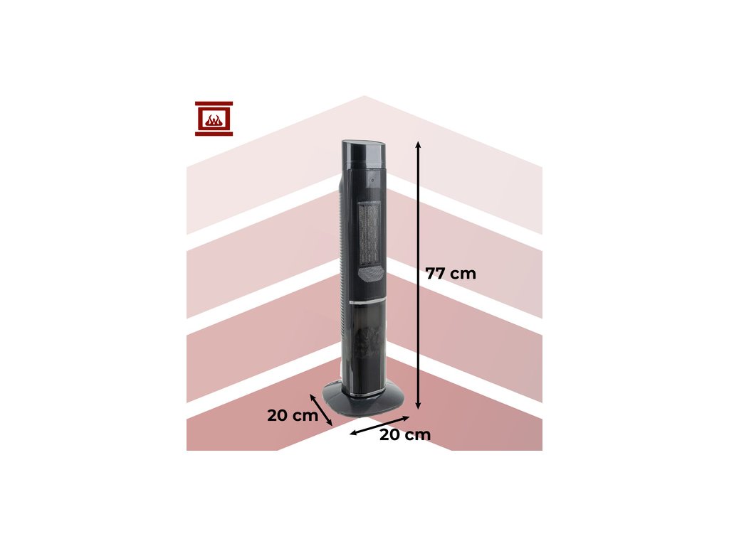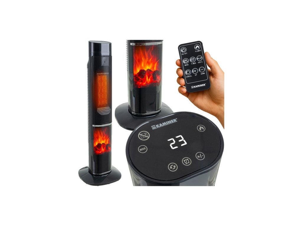 efekt hořícího krbu – vytváří v místnosti útulnou atmosféru a vertikální konstrukce sloupu zajišťuje rovnoměrné rozložení tepla a úsporu místa