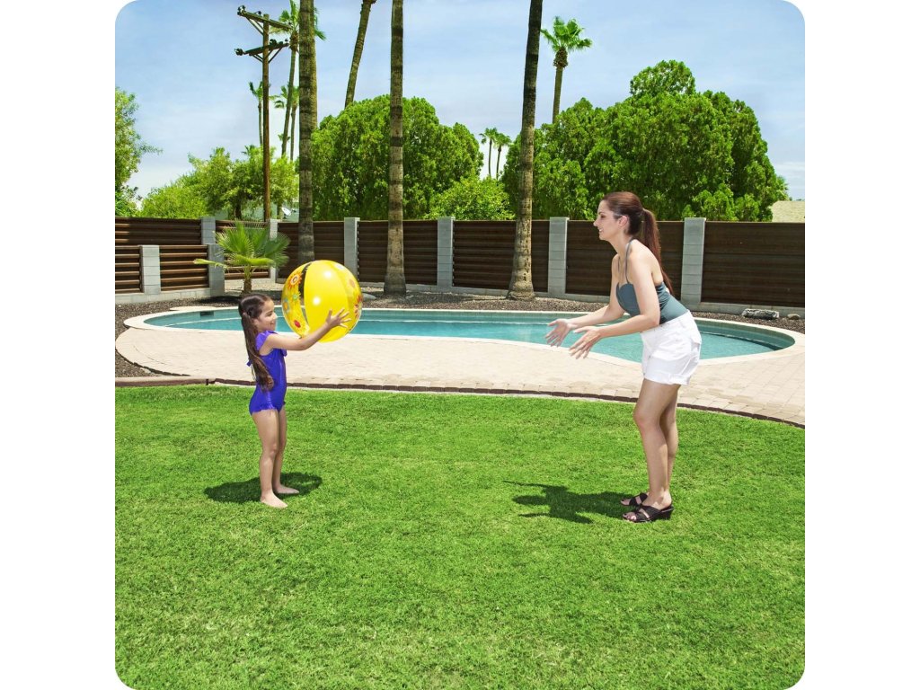 S průměrem 51 cm je tato míč ideální pro bezstarostné hraní ve vodě, kde se celá rodina může bavit bez ohledu na věk. Vzhledem k atraktivní žluté barvě se míč stane oblíbeným společníkem vašich letních radovánek.