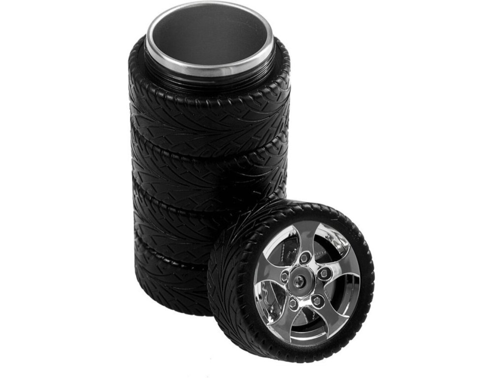 Je Váš tatínek fanda do automobilů, nebo je Váš kamarád řidič? Udělejte mu radost opravdu netradičním dárkem. Tento pneumatikový termo hrnek vykouzlí úsměv na tváři každému milovníkovi automobilů. Termo hrnek vypadá jako pneumatiky naskládané na sobě. Nyní se můžete s přáteli vypravit na dlouhou jízdu, nebo na nějakou dobrou závodní rally a vzít si sebou horký čaj nebo kávu. Nápoj Vám vydrží dlouhou dobu teplý, díky kovovému vnitřku a nehrozí, že by se Vám vylil. Pneumatikový termo hrnek je originální dárek pro řidiče.