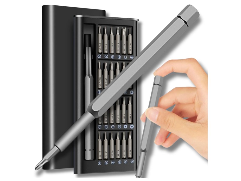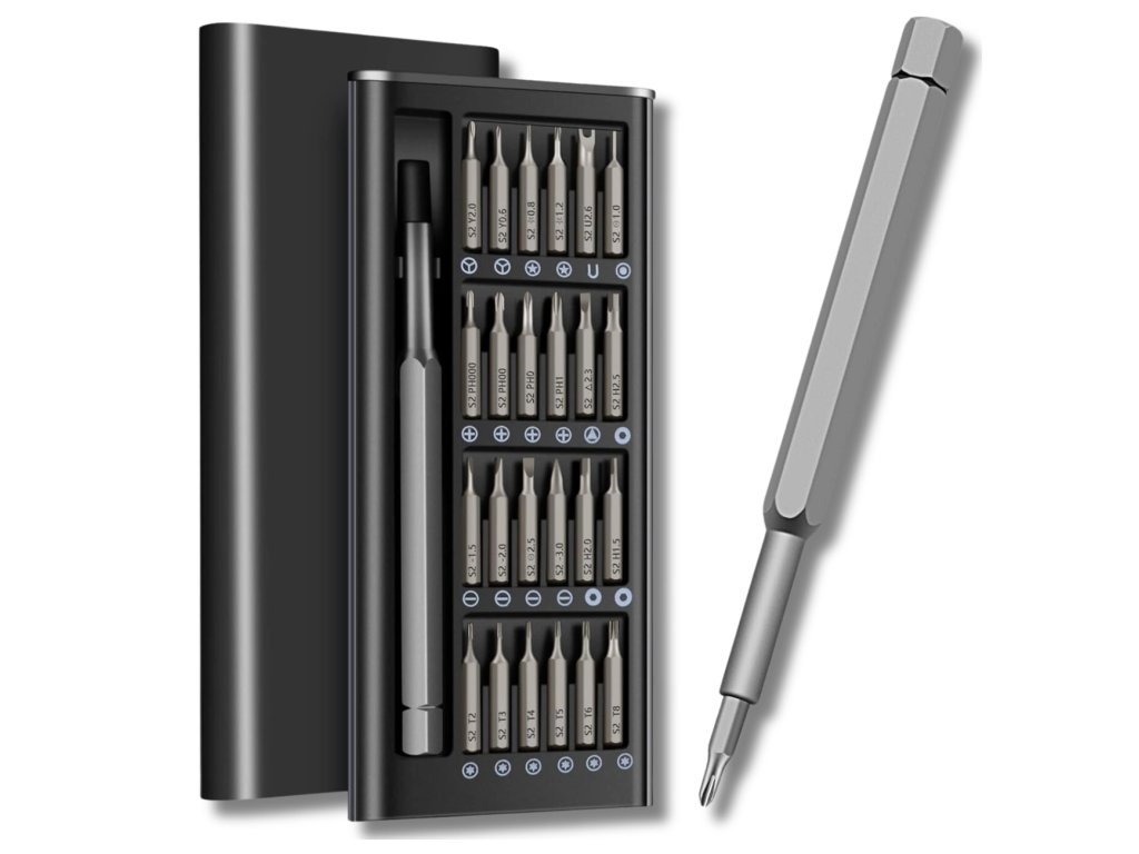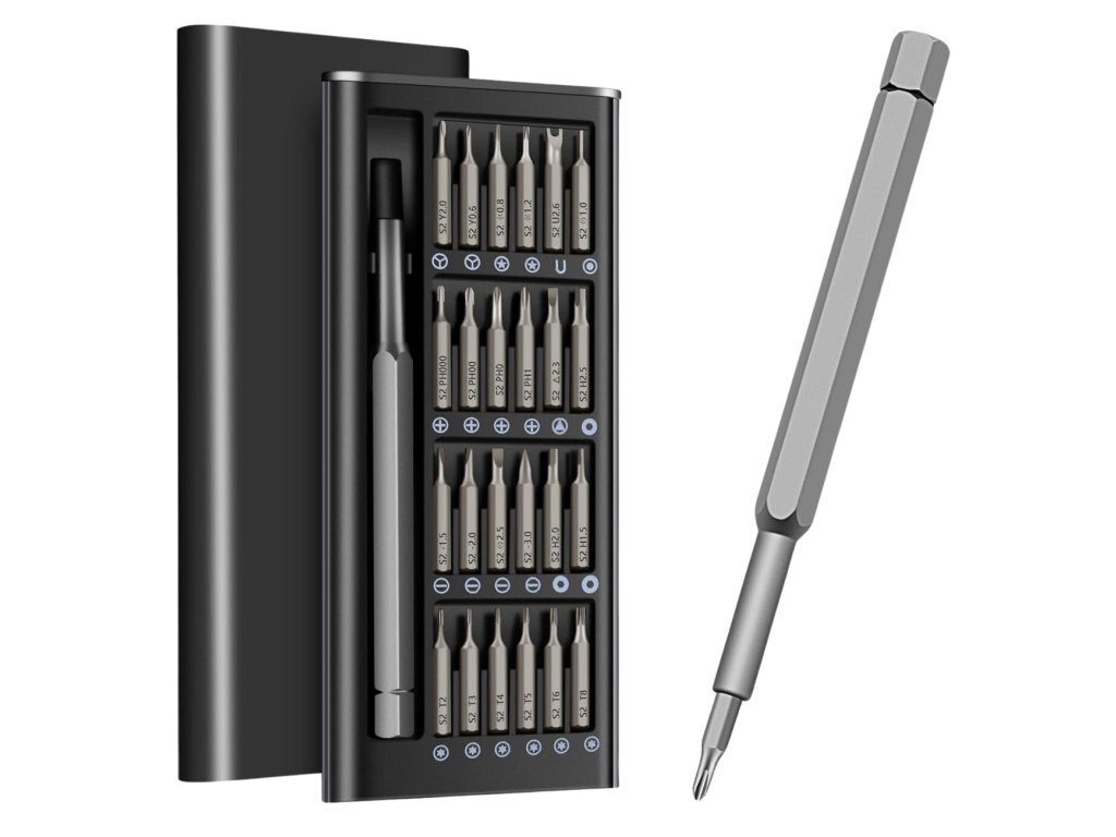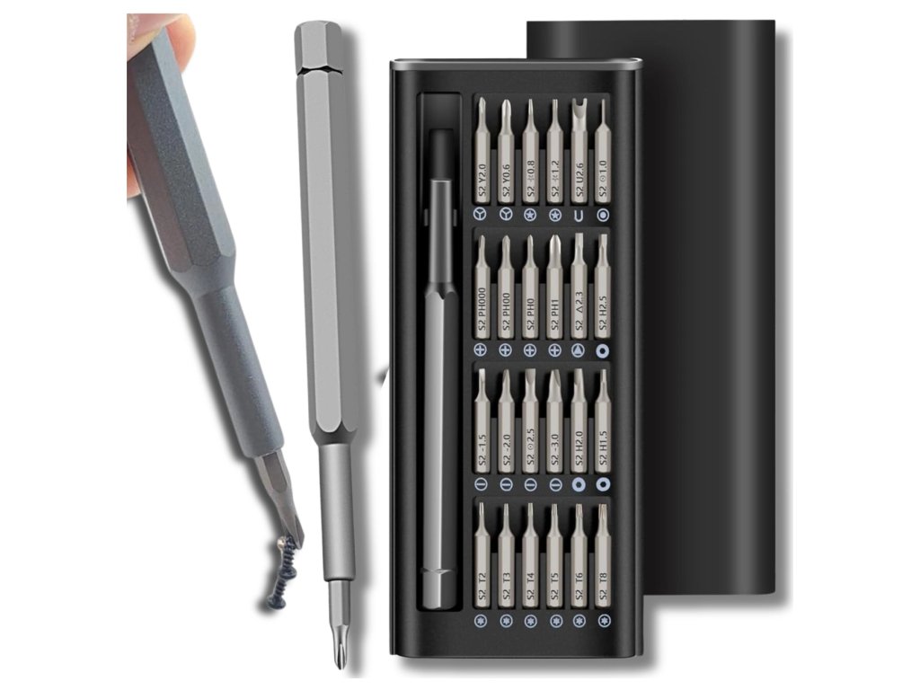 S naším 25dílným precizním šroubovákem budete mít znamenité řešení pro všechny drobné opravy a montáže přímo po ruce. Kompaktní design a chytré rozložení vám umožňuje nosit ho s sebou kamkoliv – ať už se chystáte na pracovní cestu nebo plánujete velký projekt doma. Každá z 24 různých vyměnitelných nástavců je navržena tak, aby splňovala specifické potřeby moderní elektroniky, takže se už nikdy nebudete muset obávat, že byste neměli správný nástroj.