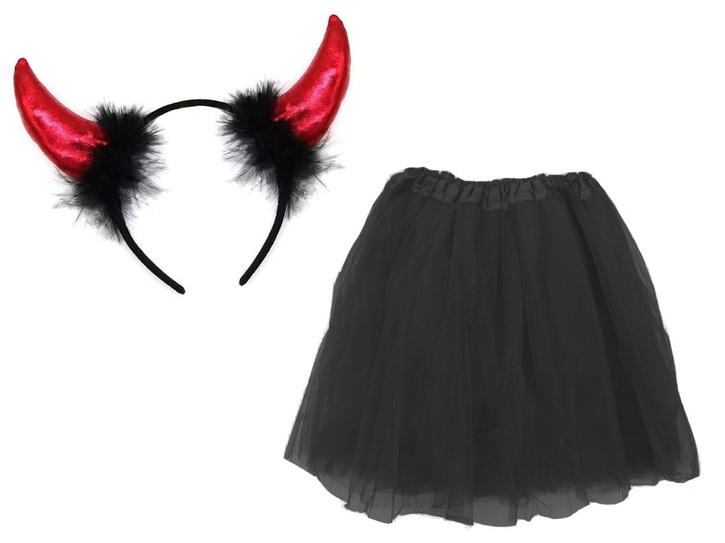 ✅ Čertovské rohy, které lze připevnit k vlasům, dotvářejí čertovský vzhled.
