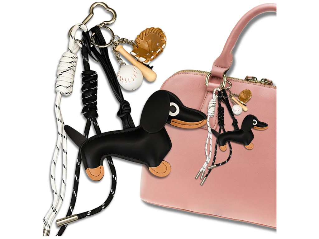 Toužíte po doplňku, který je stejně jedinečný a zábavný jako vy? Oživte své klíče, tašku nebo batoh tímto okouzlujícím přívěskem na klíče ve tvaru tašky s motivem jezevčíka a miniaturní baseballovou sadou! Je to dokonalá kombinace hravého designu, sportovního šarmu a nečekané elegance. Tento stylový kousek je vyroben ze 100% ekokůže a zaručuje odolnost a precizní zpracování, které vás bude těšit každý den.