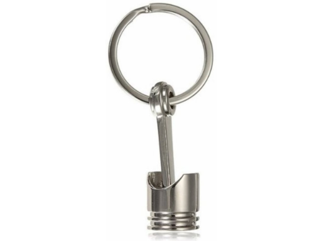 Máte doma vášnivého milovníka aut nebo třeba opraváře? Chcete mu darovat něco originálního? Pořiďte mu přívěsek na klíče - píst. Přívěsek na klíče - píst je vyroben z kovu a ke klíčům ho přiděláte pomocí kolečka. Přívěsek na klíče - píst je originální dárek, který můžete věnovat na narozeniny či svátek. Díky karabinky si můžete přívěšek přidělat i na poutko opasku a nemusíte se tak bát, že ho ztratíte. S tímto originálním přívěskem na klíče ve tvaru pístu ohromíte každého milovníka aut.