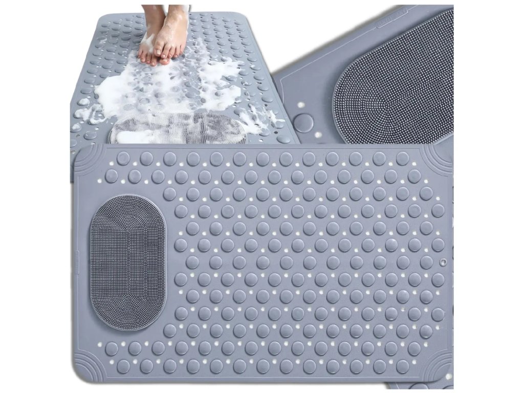 Zapomeňte na nepříjemné a nestabilní podložky. Náš model je vybaven neuvěřitelnými 160 silnými přísavkami, které zaručují absolutní stabilitu i na mokrém a kluzkém povrchu. Navíc se tato podložka stane vašimi domácími lázněmi. Speciální masážní zóna pro chodidla jemně stimuluje krevní oběh a uvolňuje svaly, čímž promění každé mytí v relaxační zážitek. Přidejte do své koupelny funkční design v neutrální, elegantní šedé barvě a užijte si rozdíl.