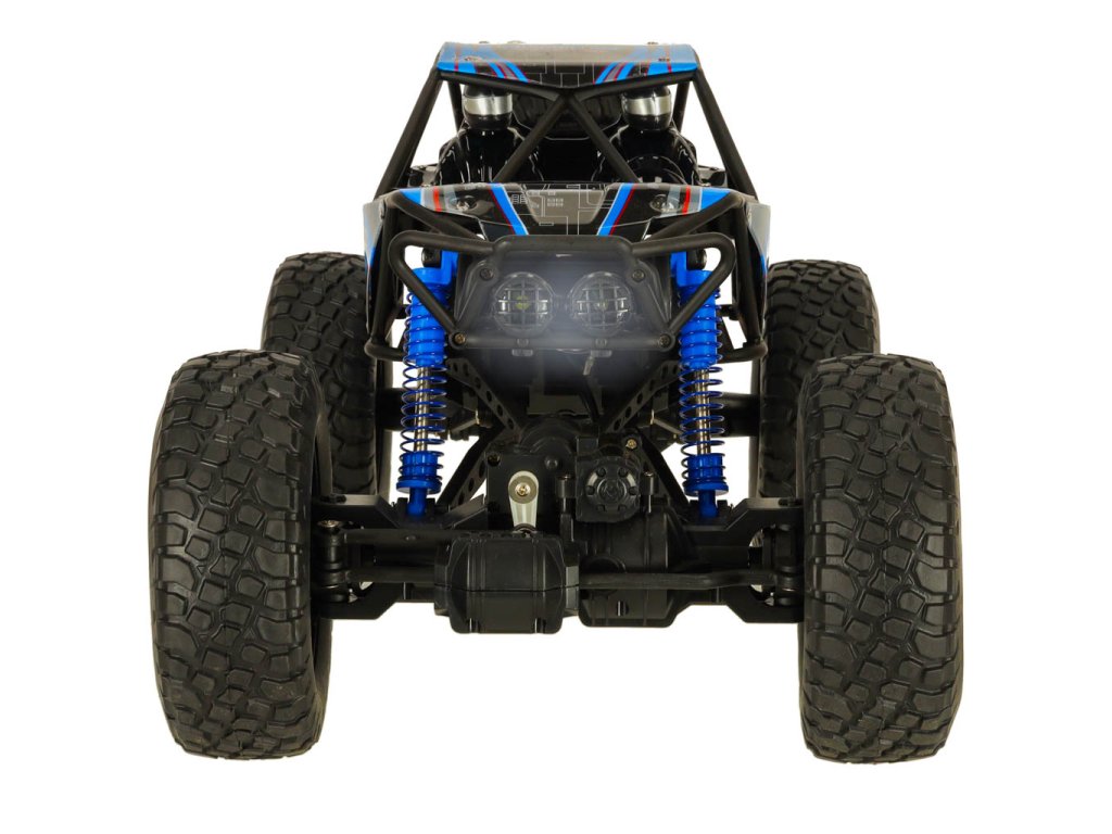 >Obrovské dálkově ovládané terénní vozidlo. Auto je snadné na ovládání. Je vybaveno vysílačem 2,4 GHz. Sada obsahuje mimo jiné dálkový ovladač napájený 4 bateriemi AA 1,5 V a auto napájené akumulátorem. Rozměry jsou 48x27x25 cm, průměr kol je 13,5 cm.