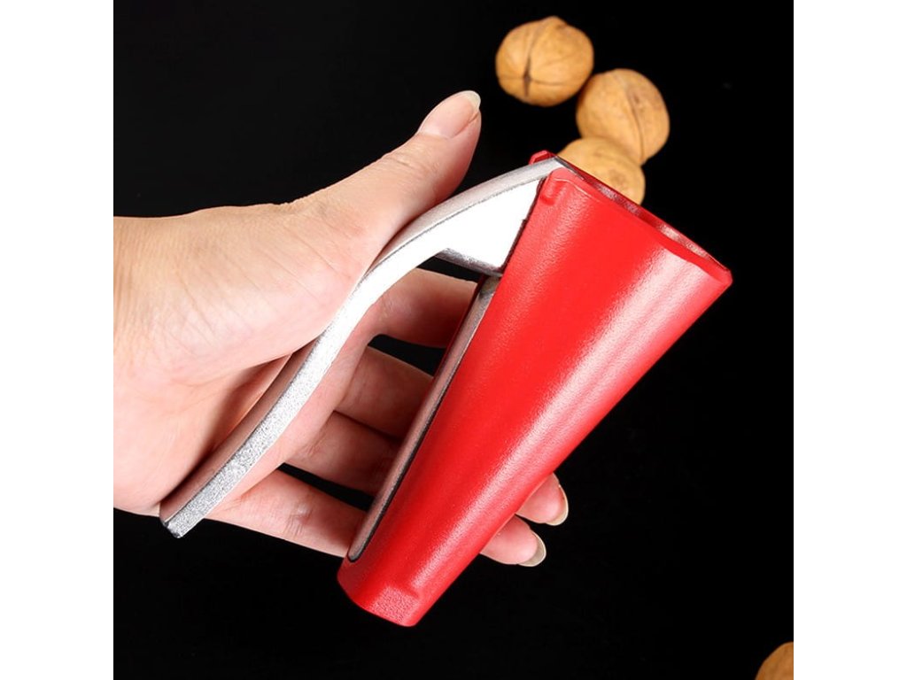 Funkční pružinový kovový louskáček na ořechy je dostupný v intenzivní, slavnostní červené barvě. Na boku je umístěna stříbrná páka na drcení ořechů. Tento výrobek se velmi snadno čistí. Stačí jej jen otočit dnem vzhůru a vysypat skořápky.