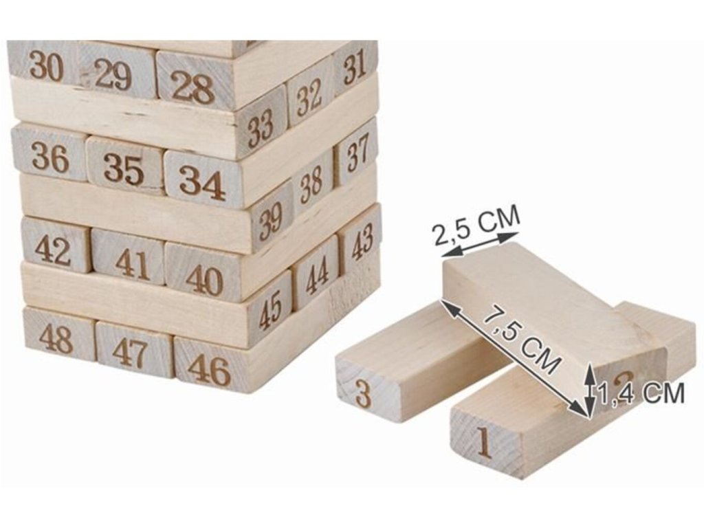 Užijte si s rodinou příjemný den a zahrajte si rodinnou hru Dřevěná věž. Hra spočívá v tom, že musíte opatrně vytahovat jednotlivé části věže a nesmíte ji při tom shodit. Jakmile věž zbouráte, prohráváte. Tato hra se hodí do nudného deštivého počasí. Dřevěnou věž můžete hrát s rodinou nebo přáteli a užít si tak spoustu legrace v kruhu blízkých. Zábavná rodinná hra Dřevěná věž je originální dárek pro celou rodinu. Tato populární hra je oblíbená po celém světě!
