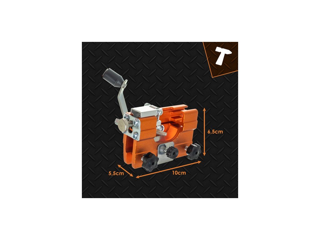 - pasuje na vaši motorovou pilu – univerzální, Ruční ostřička na motorové pily funguje s většinou standardních řetězů ; nastavitelné vodítko pomáhá nastavit správný úhel