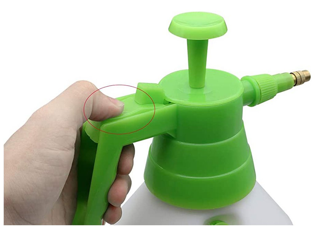 Ventil umístěný v rukojeti umožňuje ovládat postřik - pouhým stisknutím spustíte postřik. Blokovací mechanismus umístěný v rukojeti navíc umožňuje nepřetržitý postřik bez nutnosti stisknutí spouště.