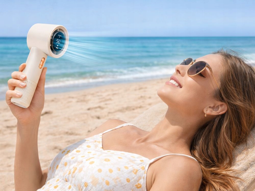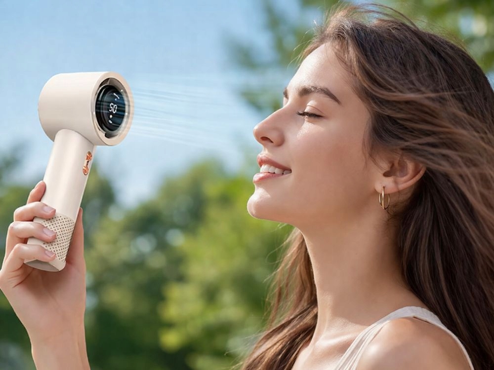 Díky ergonomickému tvaru ventilátor dobře padne do ruky. Malé rozměry umožňují vzít si ho kamkoli – do tašky nebo batohu. Je lehký, takže při používání nezatěžuje ruku. Ideální pro delší držení a pohodlné používání.