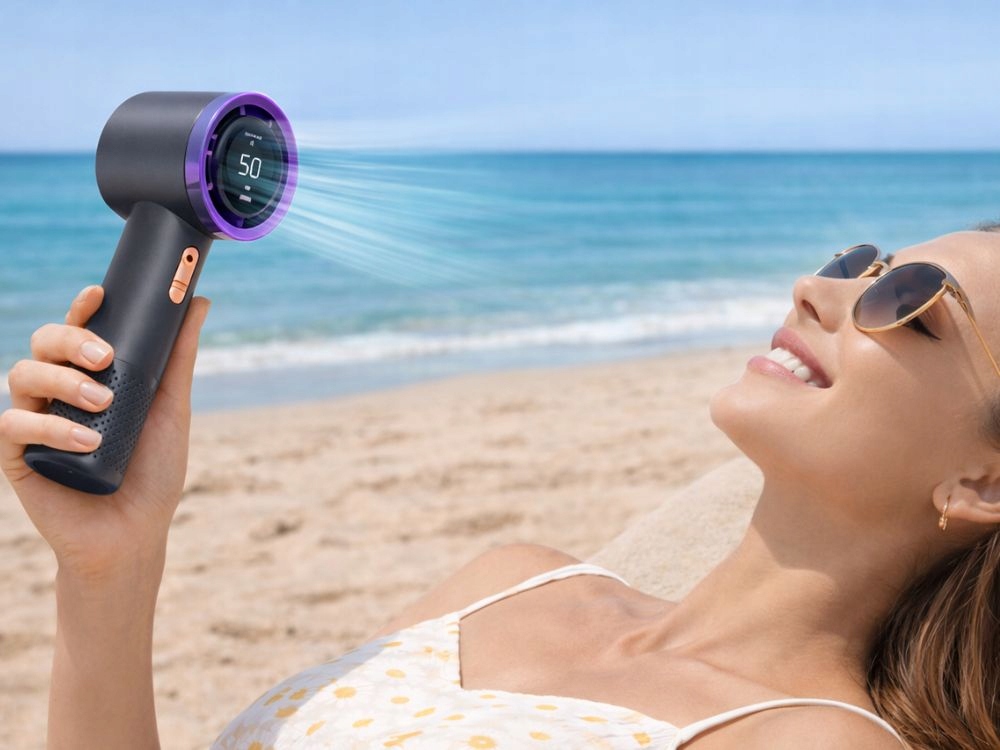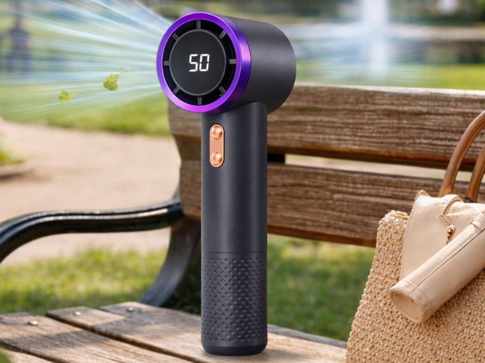 Díky ergonomickému tvaru ventilátor dobře padne do ruky. Malé rozměry umožňují vzít si ho kamkoli – do tašky nebo batohu. Je lehký, takže při používání nezatěžuje ruku. Ideální pro delší držení a pohodlné používání.