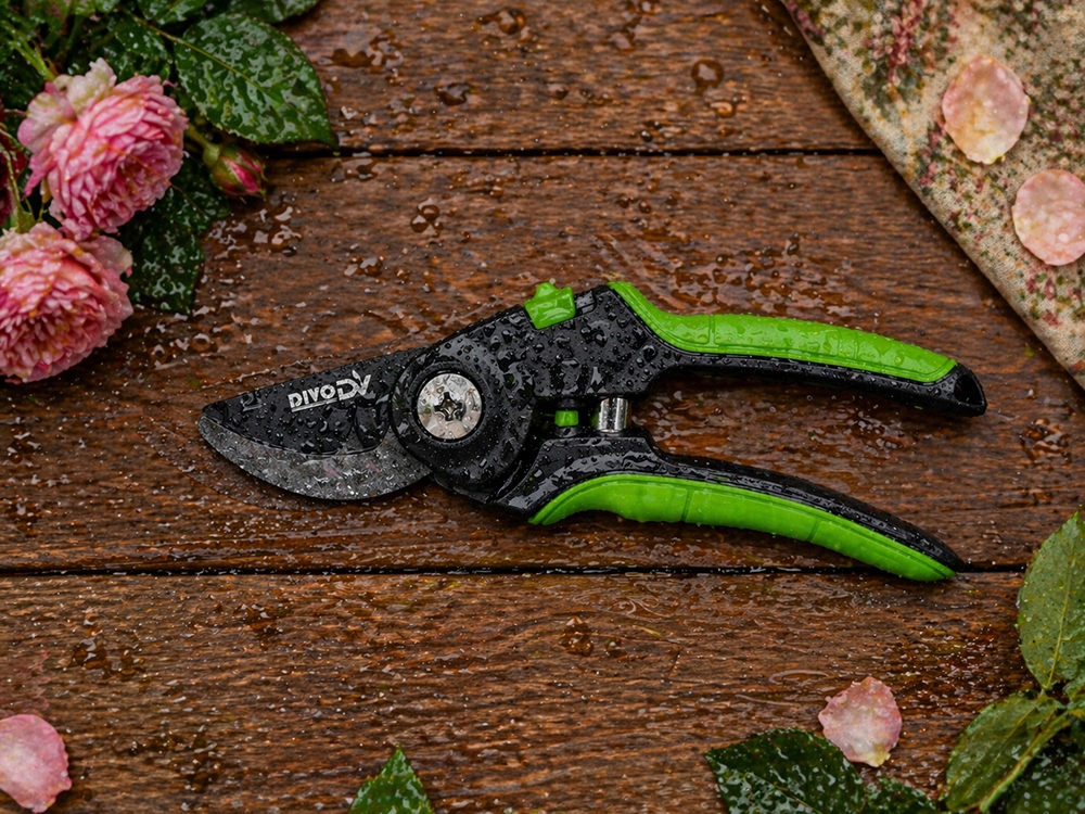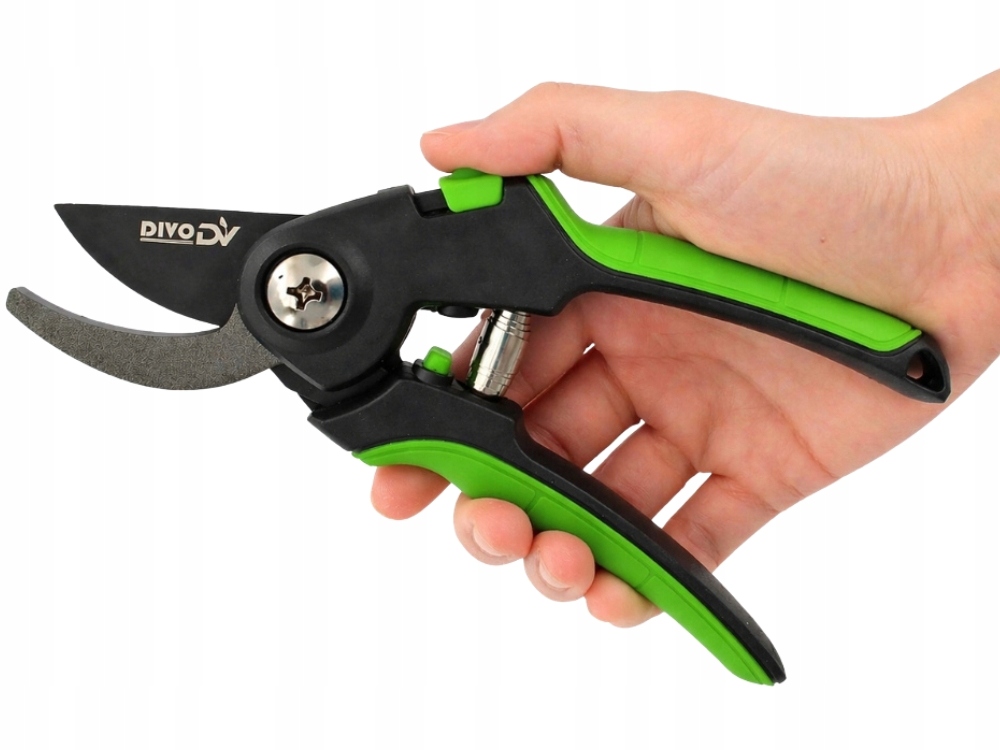 Zahradnické nůžky DIVODV jsou vybaveny pružinovým mechanismem, který po každém použití automaticky roztáhne rukojeti. Díky tomu je práce plynulejší a nevyžaduje použití velké síly – nástroj podporuje každý pohyb při stříhání.