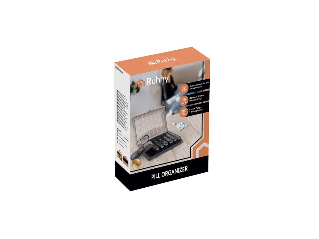 Praktický a kompaktní organizér RUHHY usnadňuje plánování užívání léků nebo doplňků stravy během celého týdne. Sada se skládá ze 7 vyjímatelných nádob rozdělených do ráno, v poledne a večer , to vše uloženo v esteticky příjemném pouzdře. Ideální pro domácnost, práci nebo cesty – zajišťuje pořádek, konzistenci a pohodlí, ať jste kdekoli.