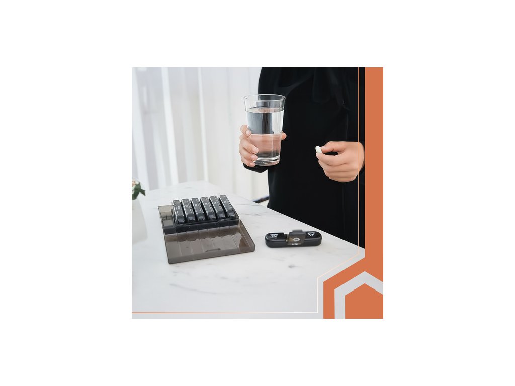 - 7 samostatných nádob s vyznačením dnů v týdnu a rozdělením na 3 denní doby - ráno, poledne, večer – zaručuje systematickou a bezchybnou kontrolu