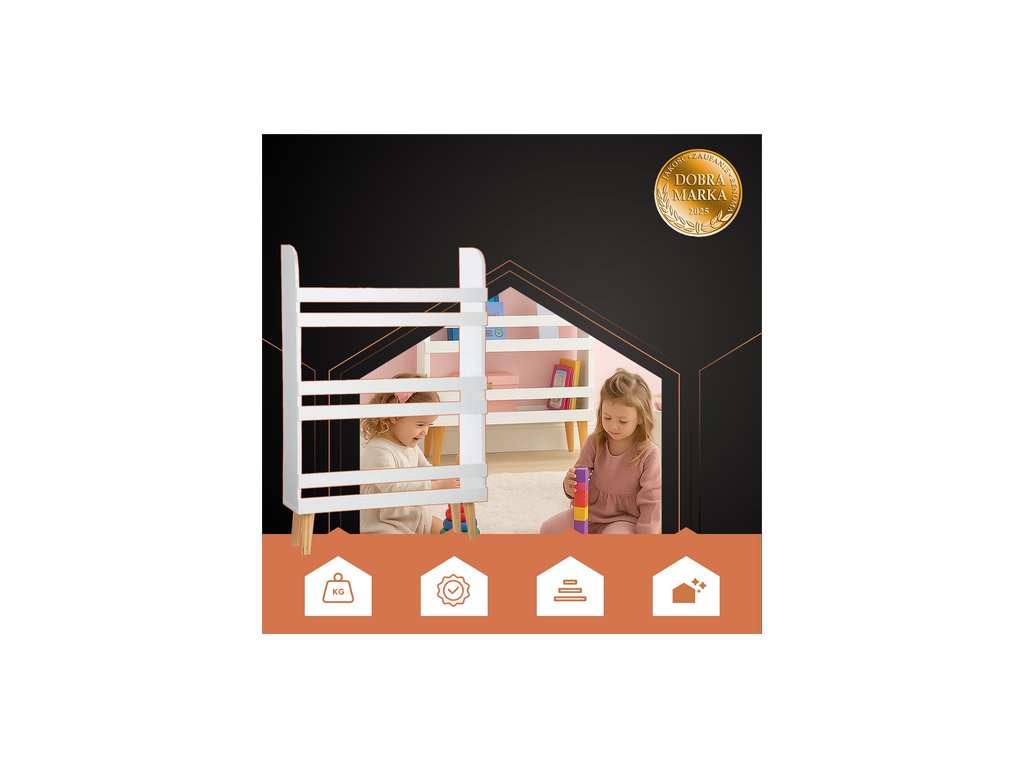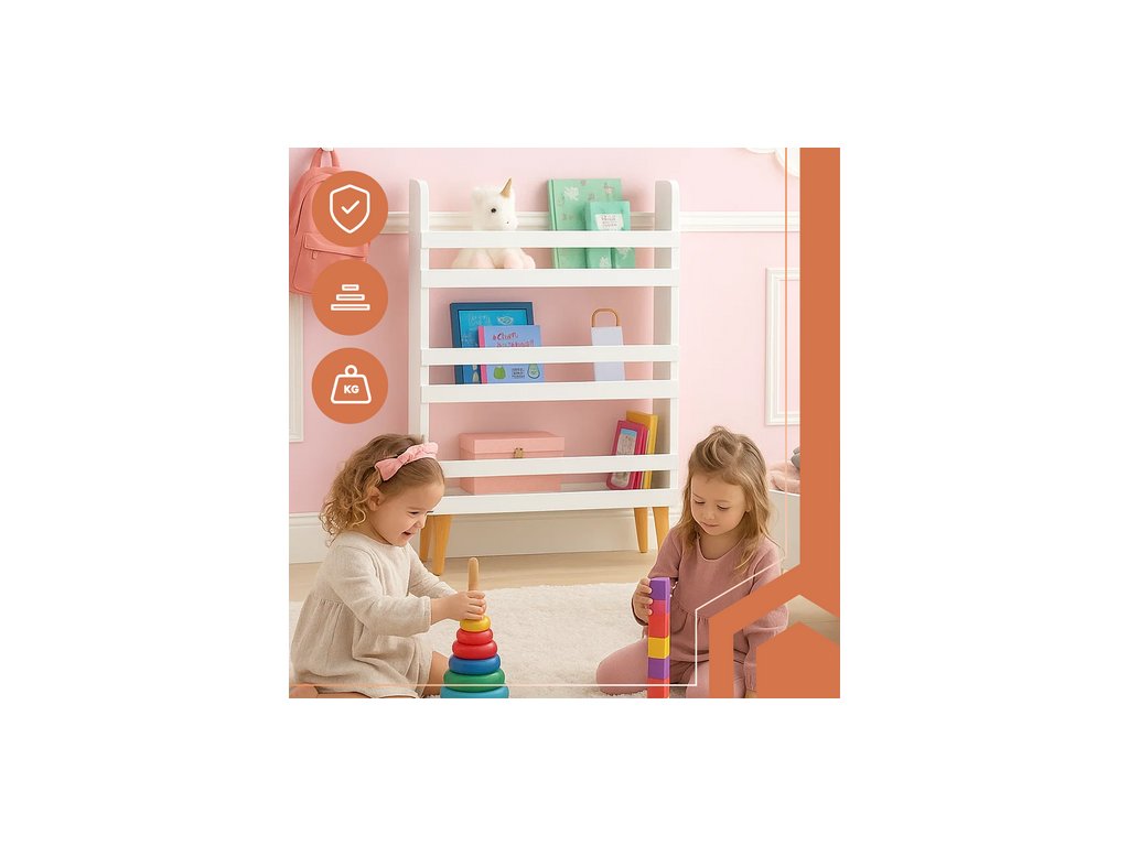 - tři prostorné úrovně polic nabízejí místo na knihy, hry, kostky a plyšové hračky - vše na dosah dítěte díky otevřené konstrukci, která podporuje samostatnost a pořádek
