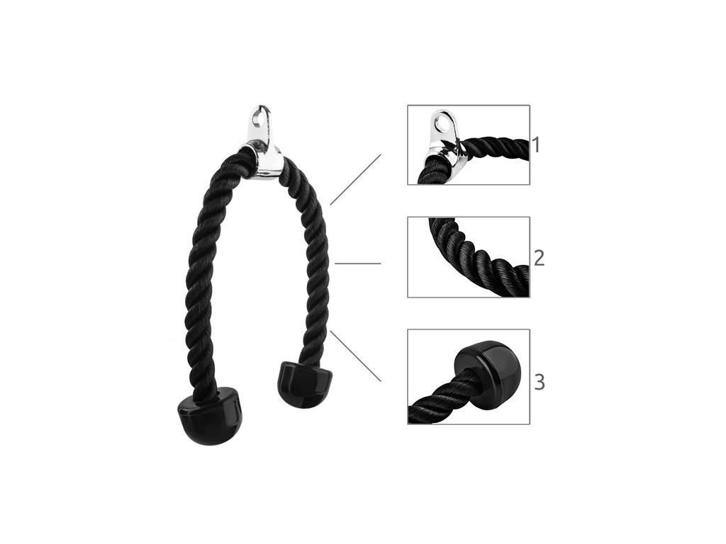 Lano rukojeti je vyrobeno z hustě spletených silných nylonových vláken ; omezovače na koncích jsou pryžové, zajišťující pevný a bezpečný trénink a otočná rukojeť je kovová, což znamená, že při použití větší zátěže nehrozí poškození přístroje a ohrožení bezpečnosti; špička také chrání lano před oděrem.