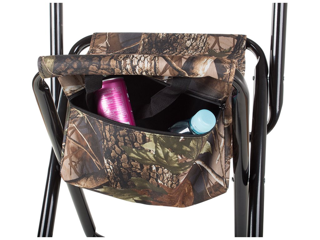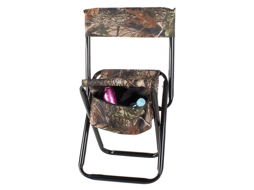 Rybářská židle má pod sedákem praktickou tašku, která se zapíná na zip.