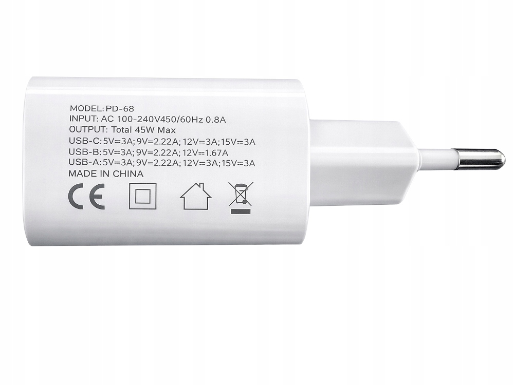 Moderní a výkonná síťová nabíječka 45W se třemi nabíjecími porty umožňuje současné nabíjení několika zařízení. Ideální pro domácnost, kancelář i na cesty.