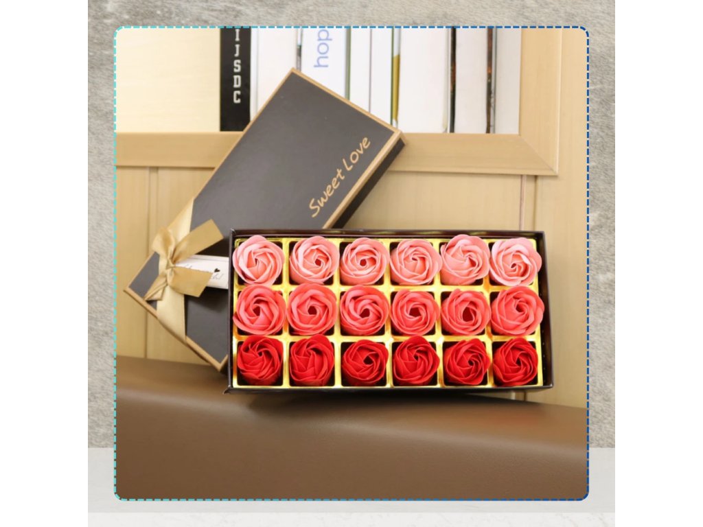Jakmile otevřete elegantní balení, uvnitř objevíte 18 kusů mýdlových růží, které vás okouzlí svým vzhledem a vůní. Tento dárkový set je připravený k okamžitému darování, takže se o něj nemusíte starat. Zejména na narozeniny, Valentýna nebo výročí uděláte radost nejen sobě, ale i svým blízkým.