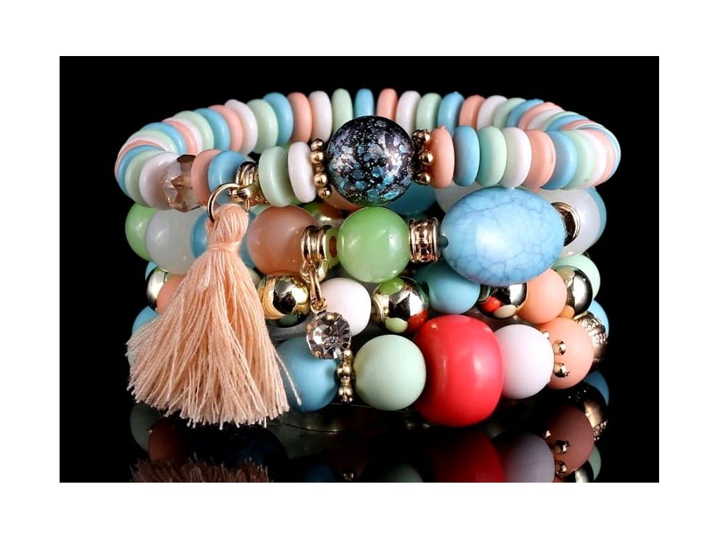 Barvy náramků odpovídají obrázku, takže si můžete být jisti, že dostanete přesně to, co vidíte. Můžete si vybrat ze čtyř různých barev podle svého vkusu nebo outfitu. Název produktu "Sada náramků střapce multi korálky přívěsky" dokonale popisuje jejich design - kombinace různých materiálů a barev vytváří unikátní a stylový doplněk.