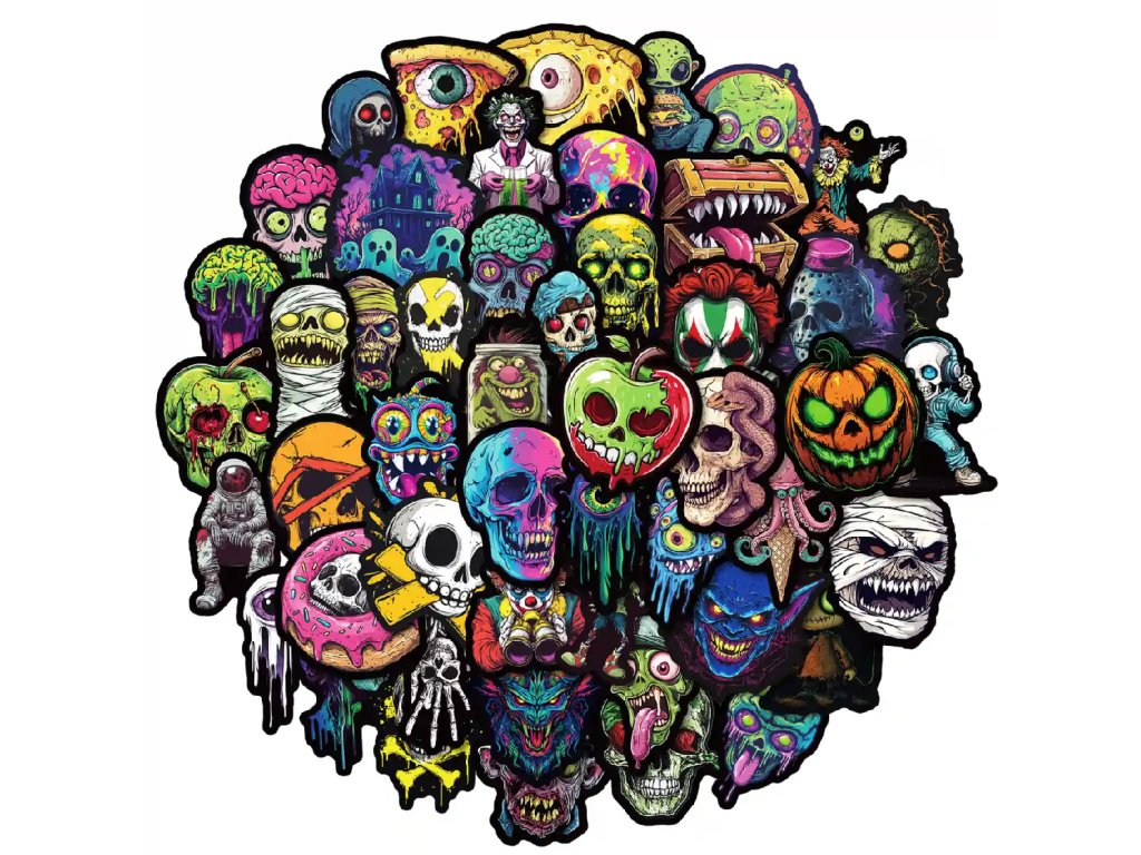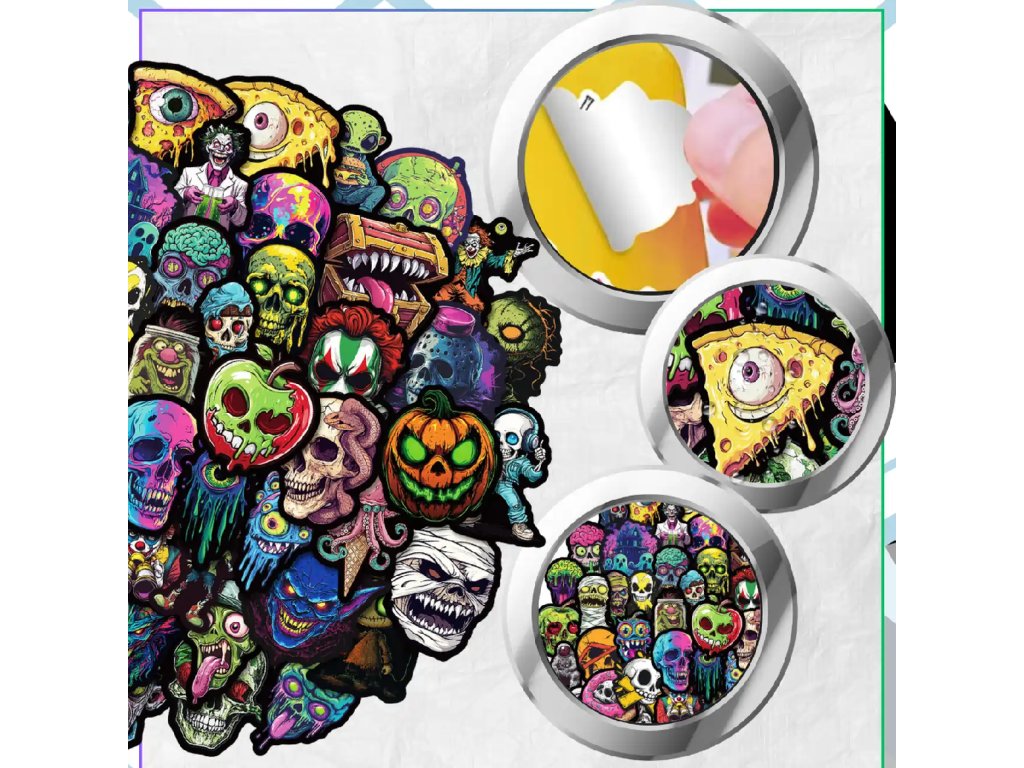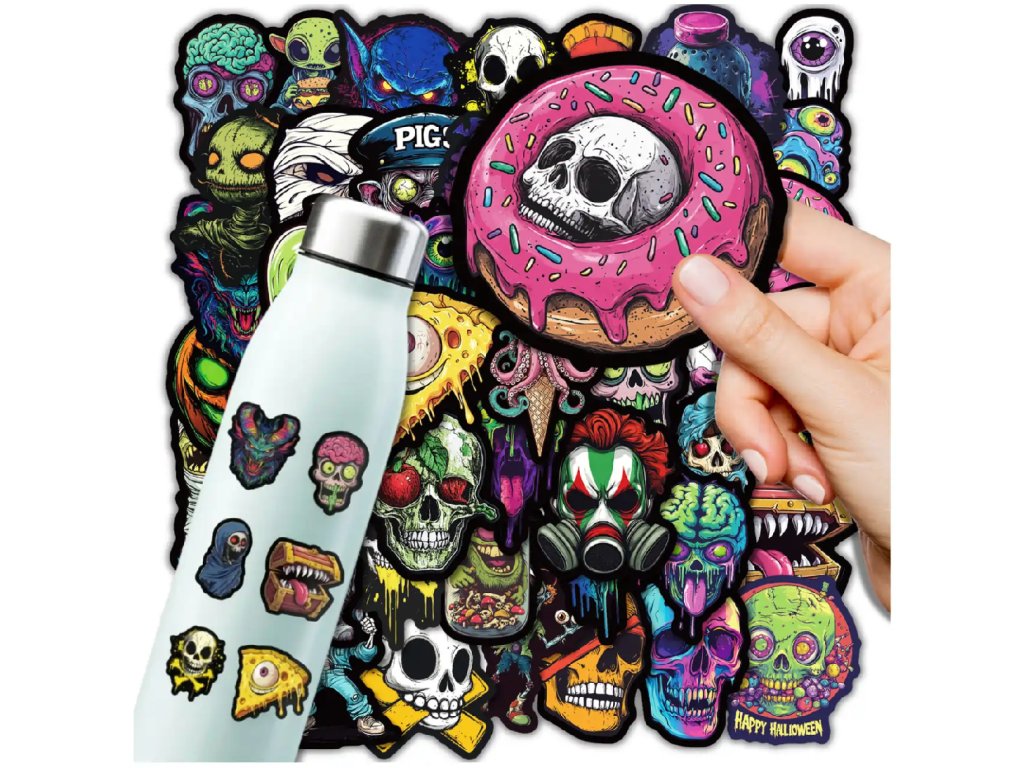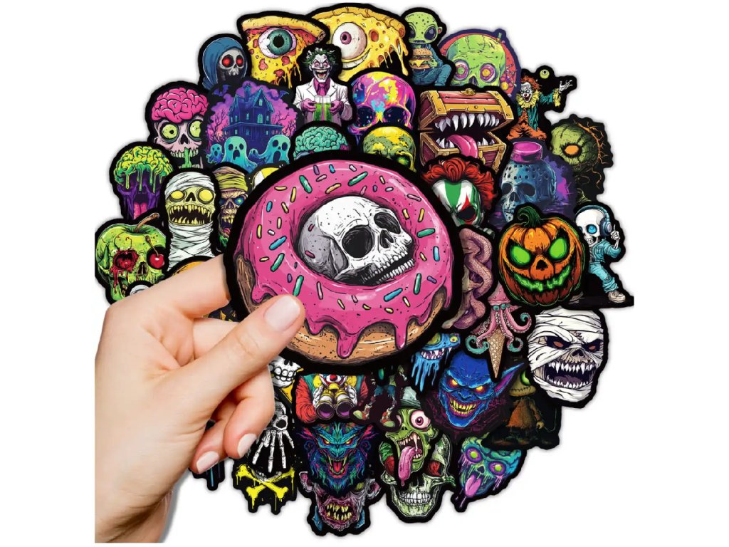 Vyjádřete svůj nespoutaný styl a dodejte svým věcem jedinečný vizuální příběh s touto sadou 50 originálních samolepek. Mix motivů s lebkami, monstry a graffiti v sobě spojuje temnou estetiku s divokou energií pouličního umění, která okamžitě upoutá pozornost každého kolemjdoucího. Je to ideální volba pro fanoušky hororu a alternativní kultury, kteří chtějí vystoupit z davu a personalizovat své okolí s nekompromisním postojem.