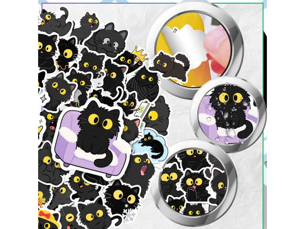 Rozveselte svůj každodenní život s touto jedinečnou sadou samolepek s motivy černých koček, které okamžitě dodají šmrnc a osobitost vašim oblíbeným předmětům. Každá samolepka v balení se pyšní unikátním designem, od roztomilých a hravých koťátek až po tajemné a magické kočičí siluety, což zaručuje, že vaše kreativní tvoření bude vždy originální. Kvalitní zpracování a výrazné barvy zajistí, že vaše věci vystoupí z davu a vykouzlí úsměv na tváři každému milovníkovi těchto fascinujících zvířat.