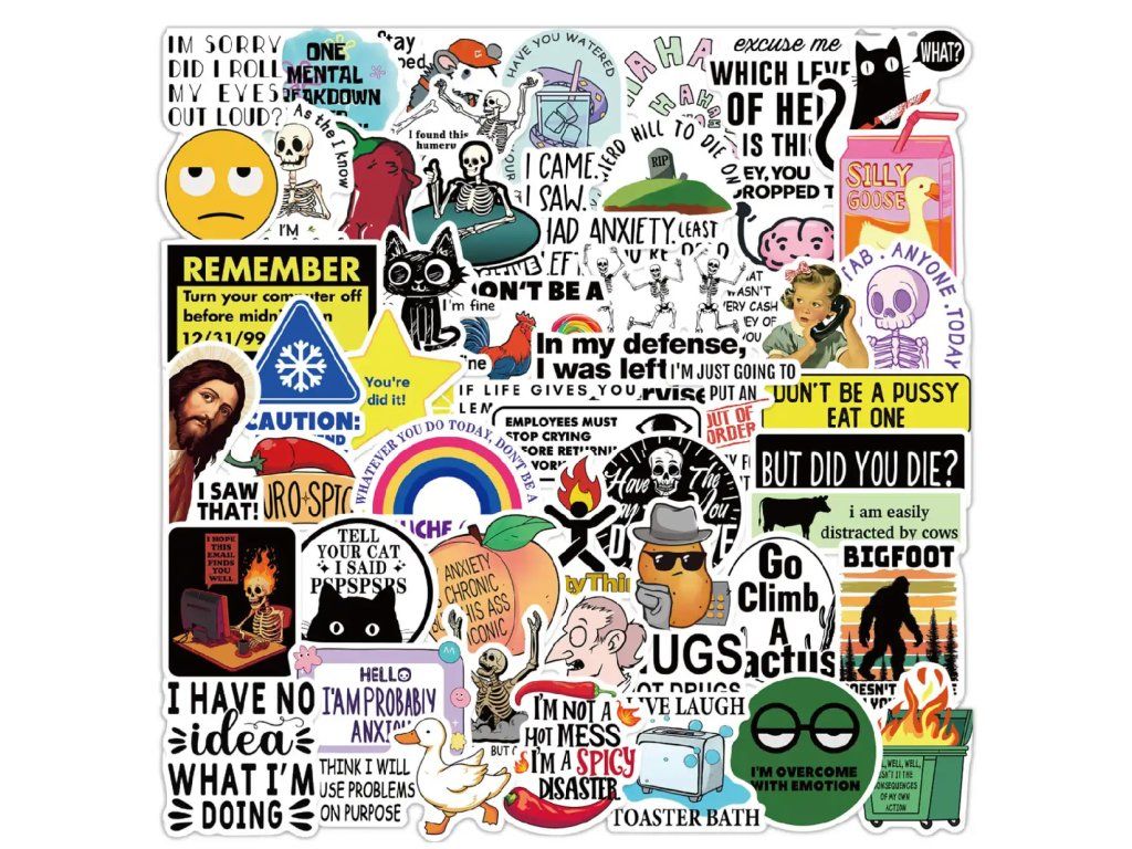 Vyjádřete svou osobnost a dodejte svým věcem nezaměnitelný styl s touto unikátní sadou, která je stvořená pro fanoušky černého humoru a sarkasmu. Kolekce plná ironických textů a ikonických internetových memů vám umožní vtipně komentovat každodenní realitu i pracovní absurdity. Je to ideální volba pro každého, kdo se nebojí vyčnívat a chce své okolí obohatit o pořádnou dávku vtipu a nadhledu.