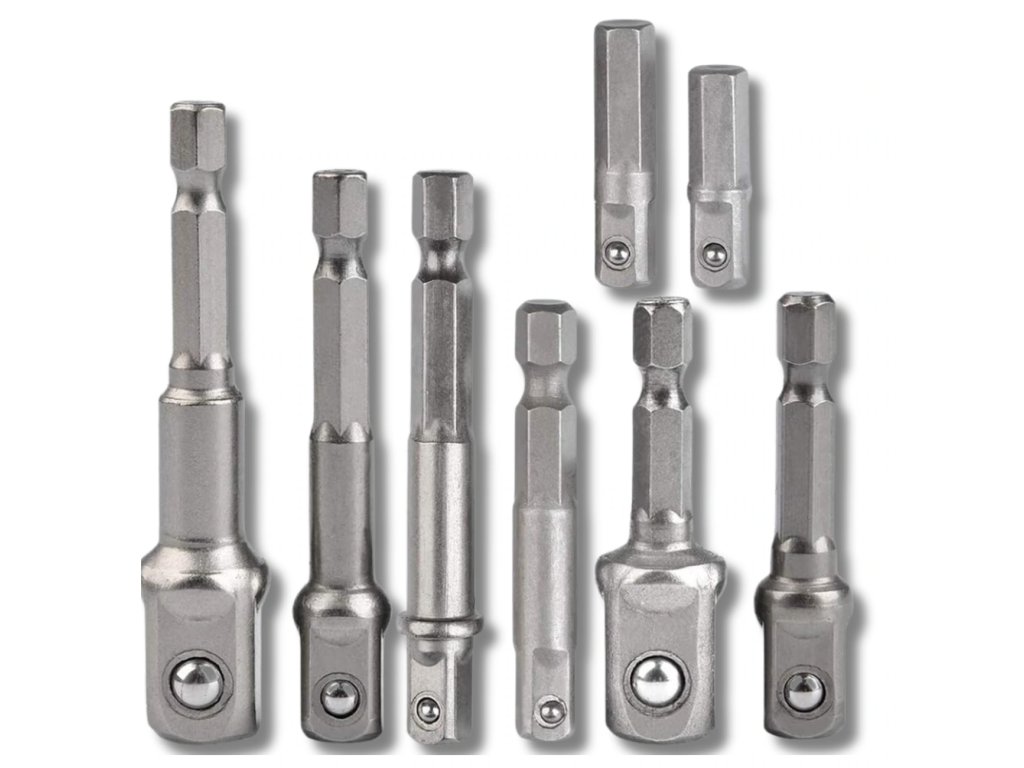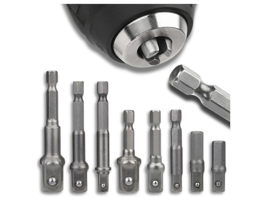 Vyrobené z kvalitní chrom-vanadové oceli (Cr-V), tyto adaptéry jsou už jen pojmem pro odolnost. Odolávají opotřebení a poškození, takže vám poslouží dlouho, i při intenzivním užívání. S našimi adaptéry budete mít maximální pohodlí a bezpečnost díky kulové zarážce, která zajišťuje pevné uchycení. Neztrácejte čas hledáním správných adaptérů, vyberte si náš kompletní set a užijte si bezproblémovou a přesnou práci!