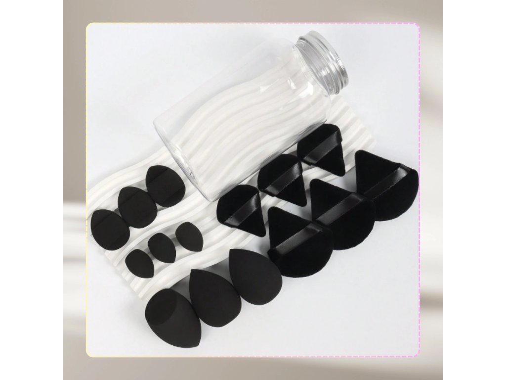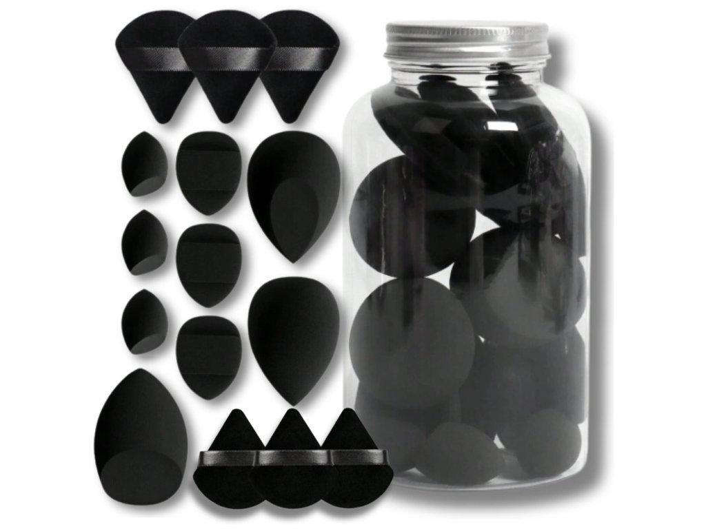 Tato jedinečná Sadaa houbiček na make-up v elegantní černé barvě je ideální doplněk do tvé kolekce kosmetických nástrojů. Praktická sklenice obsahuje vše, co potřebuješ pro vytvoření dokonalého make-upu s profesionálním výsledkem. Balení zahrnuje: