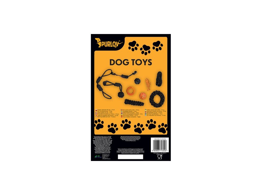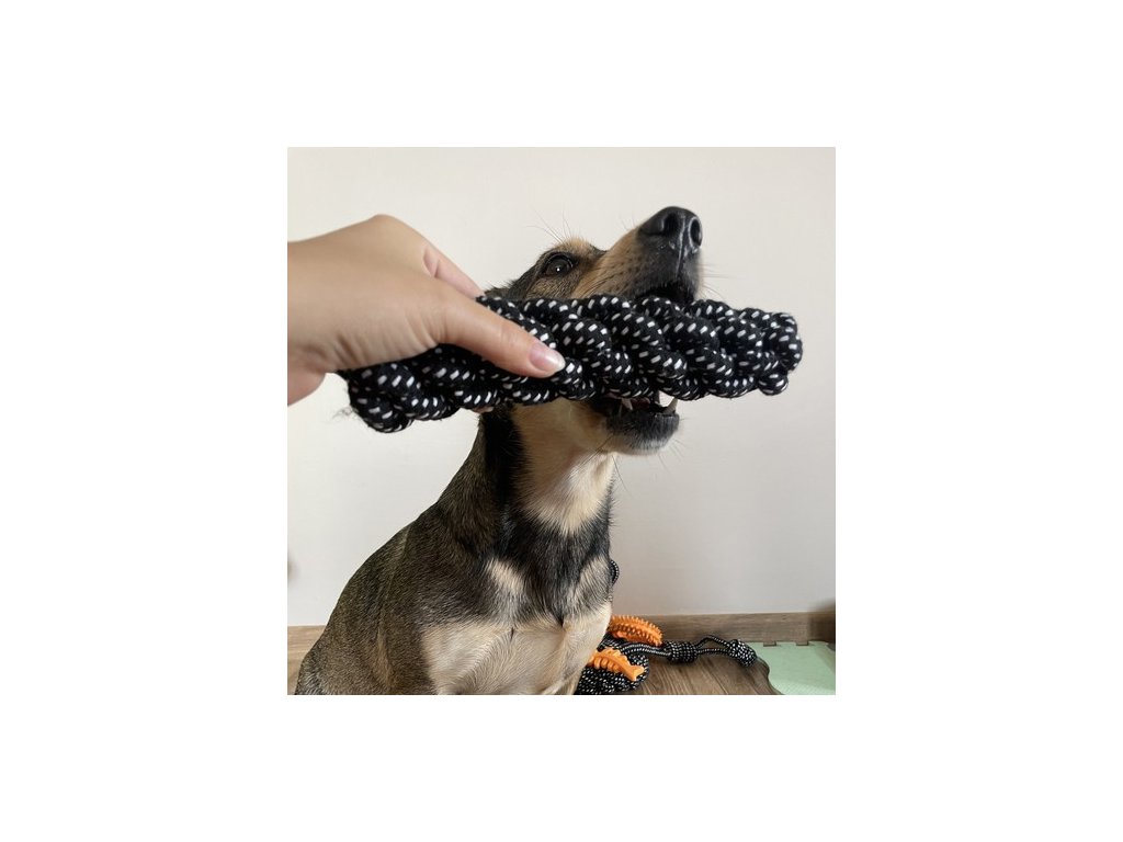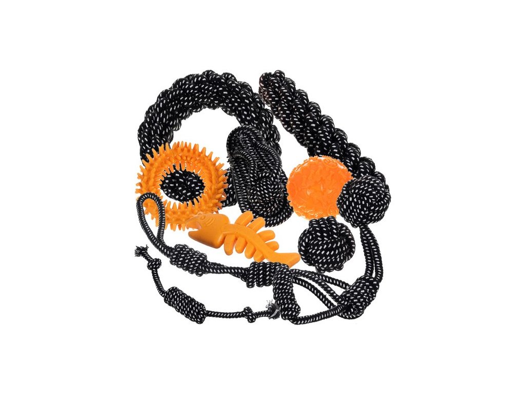 - RŮZNÉ HRAČKY - sada 10 psích hraček je to perfektní řešení pro vaše mazlíčky různé formy zábavy a aktivit . Sada obsahuje: tři různé trháky - se dvěma smyčkami, s kuličkou a zakončené uzly . Tyto hračky jsou vyrobeno z odolného černobílého lana , které nejen upoutá pozornost psa, ale také ho nechá vyniknout trvanlivé a odolné proti poškození . Navíc sada obsahuje pletené kousátko ve tvaru klapky, míčku a kroužku o průměru 17 cm , které pejskovi poskytují pestrost a nové podněty ke hře.