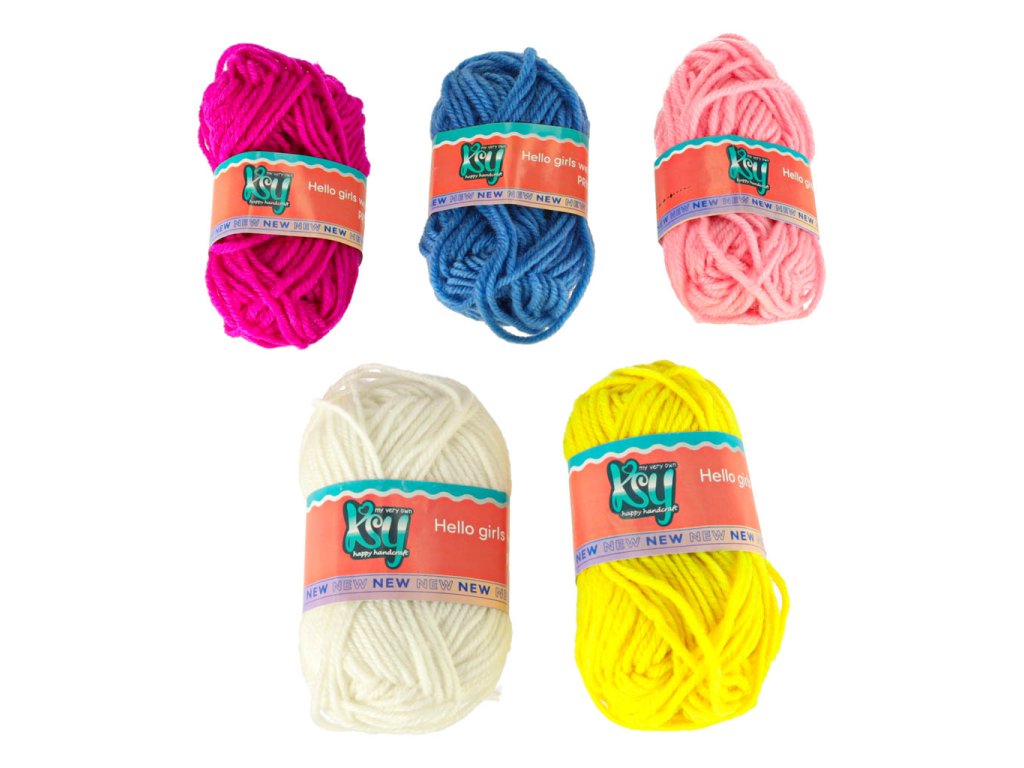 - 5x příze různých barev : (žlutá , modrá , bílá, fialová, růžová).