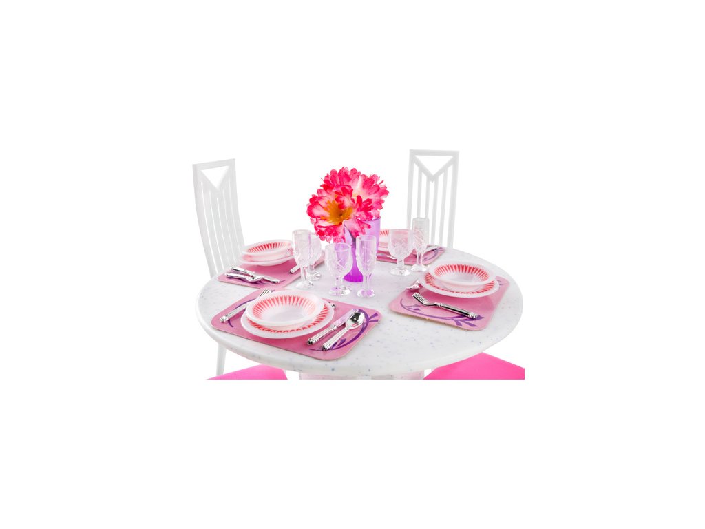 - Velká sada 43 dílků - kompletní jídelna v miniatuře – stůl, 4 židle, nádobí, příbory, sklenice a váza s květinami; sada zaručující hodiny kreativní hry.