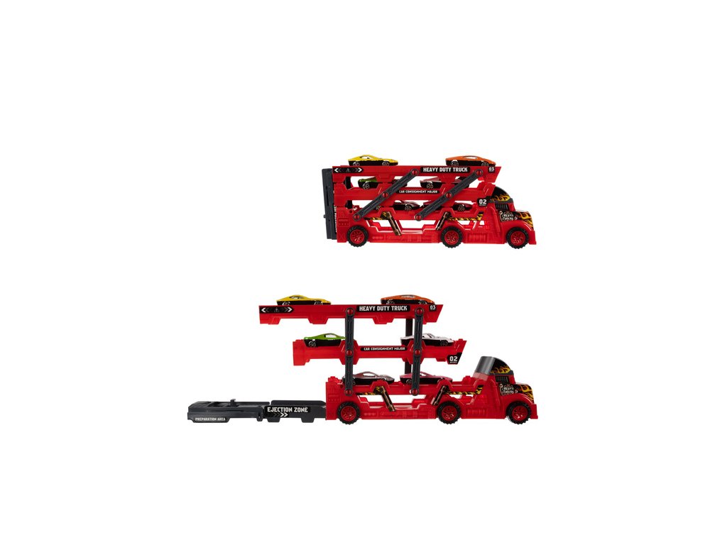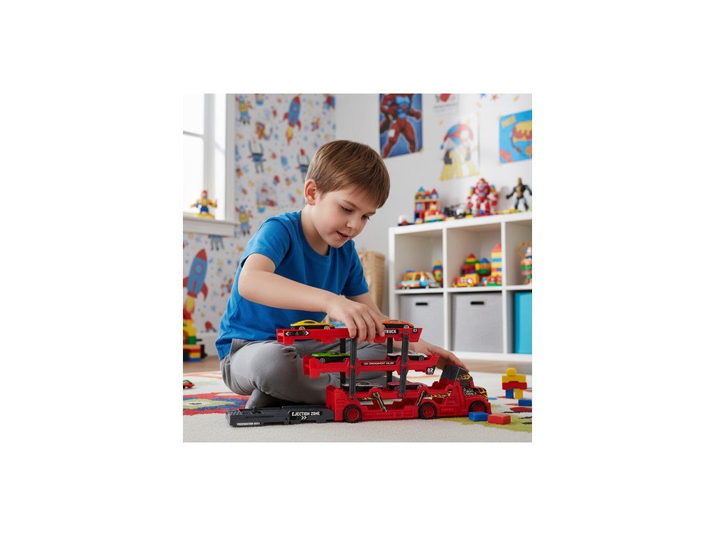 Ponořte své dítě do vzrušujícího světa motorismu s tímto realistickým nákladním vozem se 6 autíčky. Unikátní odpalovací zařízení umožňuje odpalovat autíčka, což hře dodává dynamiku a vzrušení. Není to jen hračka – je to cesta do světa závodění, dobrodružství a rozvoje fantazie a obratnosti.