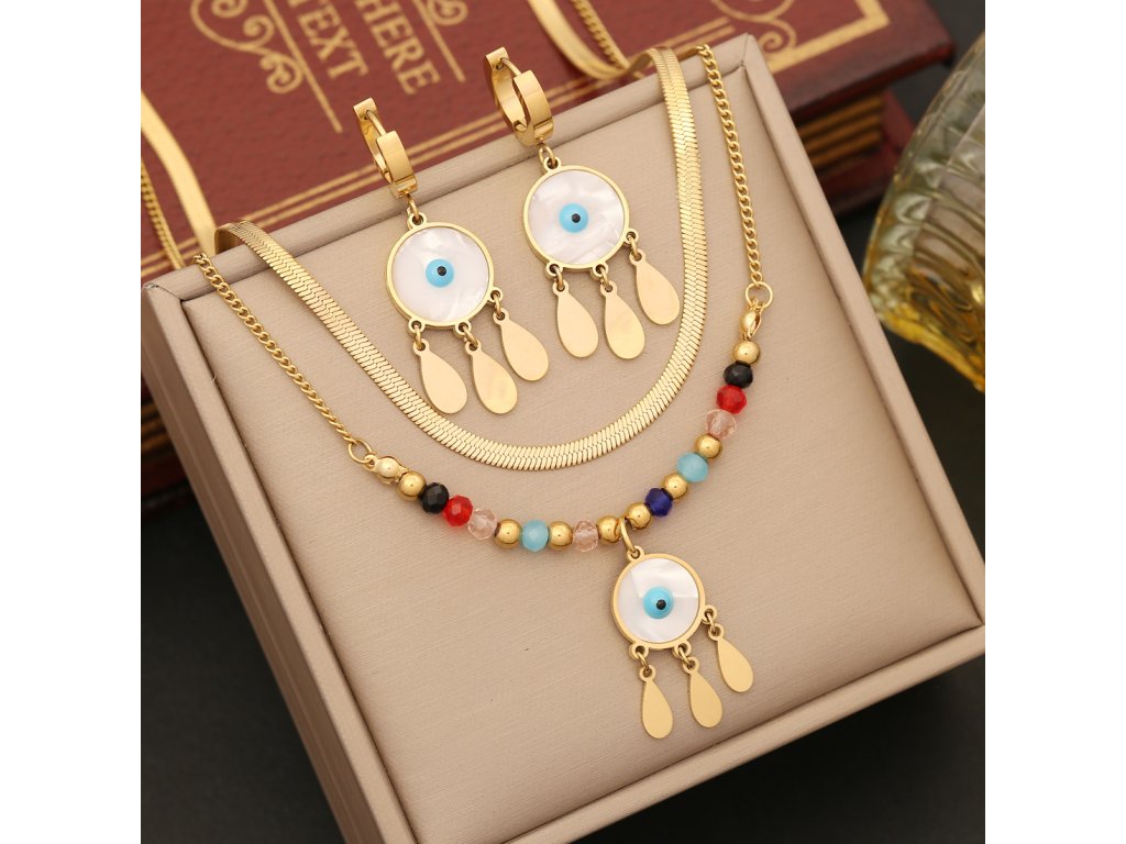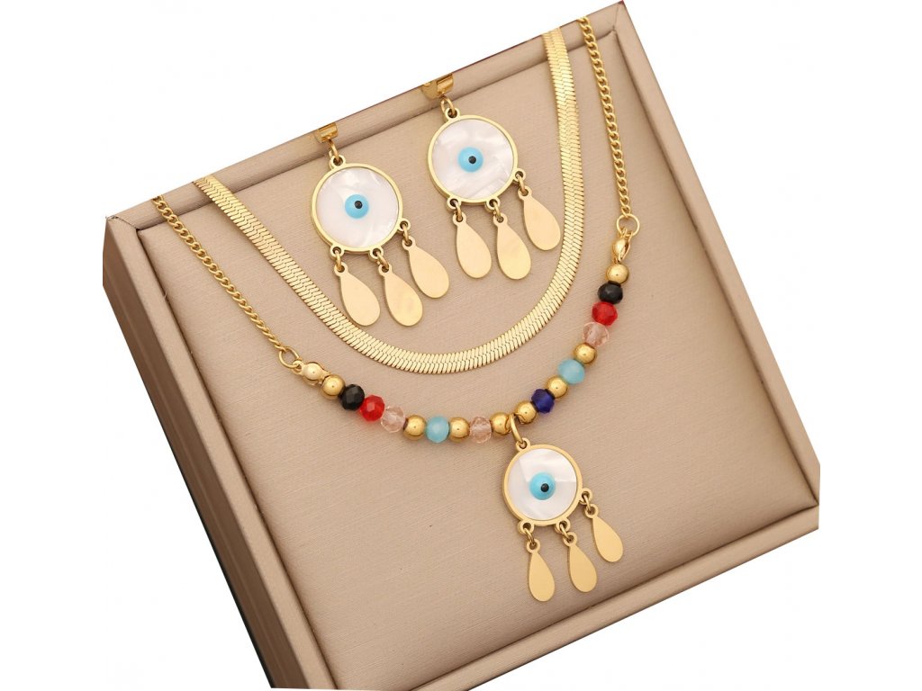 Představujeme Vám náhrdelník a náušnice Prorokovo oko I. - klíč k ochraně, síle a vnitřnímu klidu. Tento kus šperku je pečlivě vyroben z chirurgické oceli - materiálu, který je nejen zdravotně nezávadný, ale i nesmírně odolný.