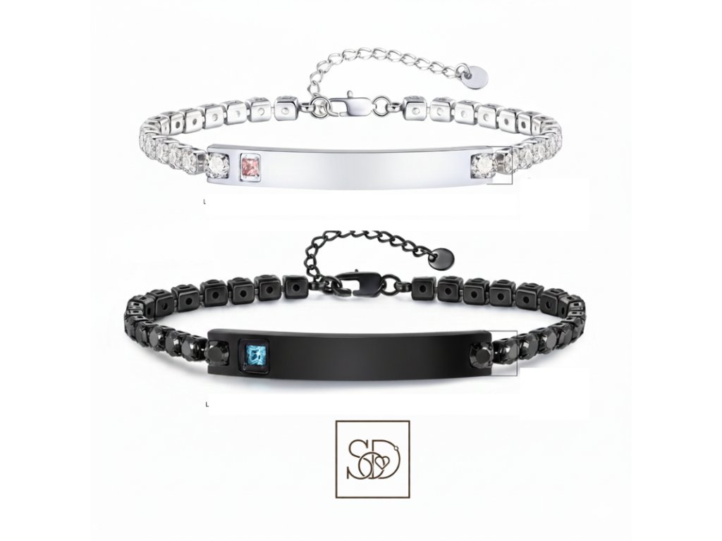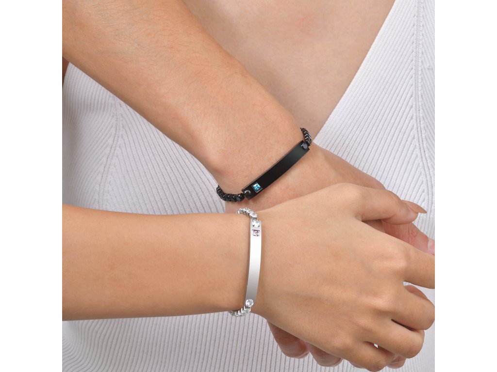 Luxusní sada dvou náramků z chirurgické oceli 304 pro páry. Kombinace gun black povrchu a čistého stříbrného lesku se zirkony v Claw Settingu. Ideální dárek k Valentýnu od Srdcem darované.