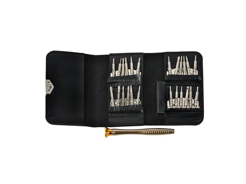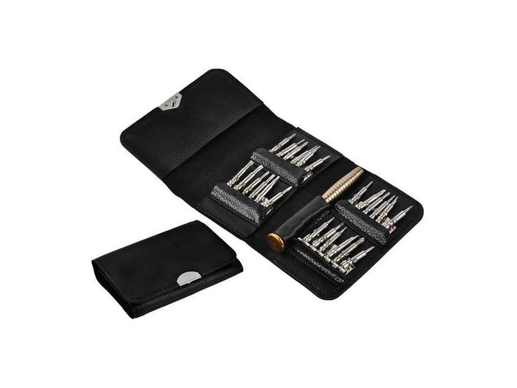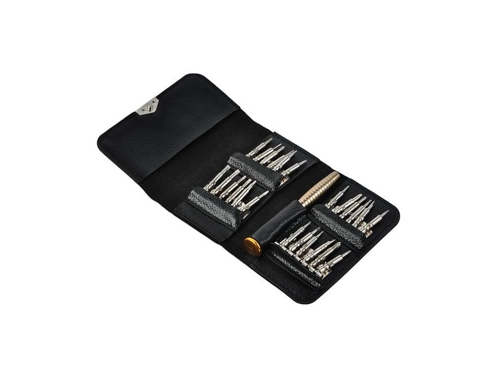 Opravy moderních elektronických zařízení vyžadují nejen dovednosti, ale také použití vhodného a přesného vybavení. Výrobci používají různé typy ochran, což znamená, že k jejich otevření jsou zapotřebí další hroty, které se v základních sadách šroubováků těžko shánějí. Sada specializovaných šroubováků obsahuje 25 prvků v pouzdře uzavřeném magnetem. Každý prvek má své místo, což umožňuje udržovat pořádek a efektivní organizaci pracoviště a tím i jeho rychlé a přesné provedení. Sada je určena k opravám telefonů, chytrých telefonů a tabletů i všech ostatních zařízení a zařízení, která mají nestandardní malé šroubky.