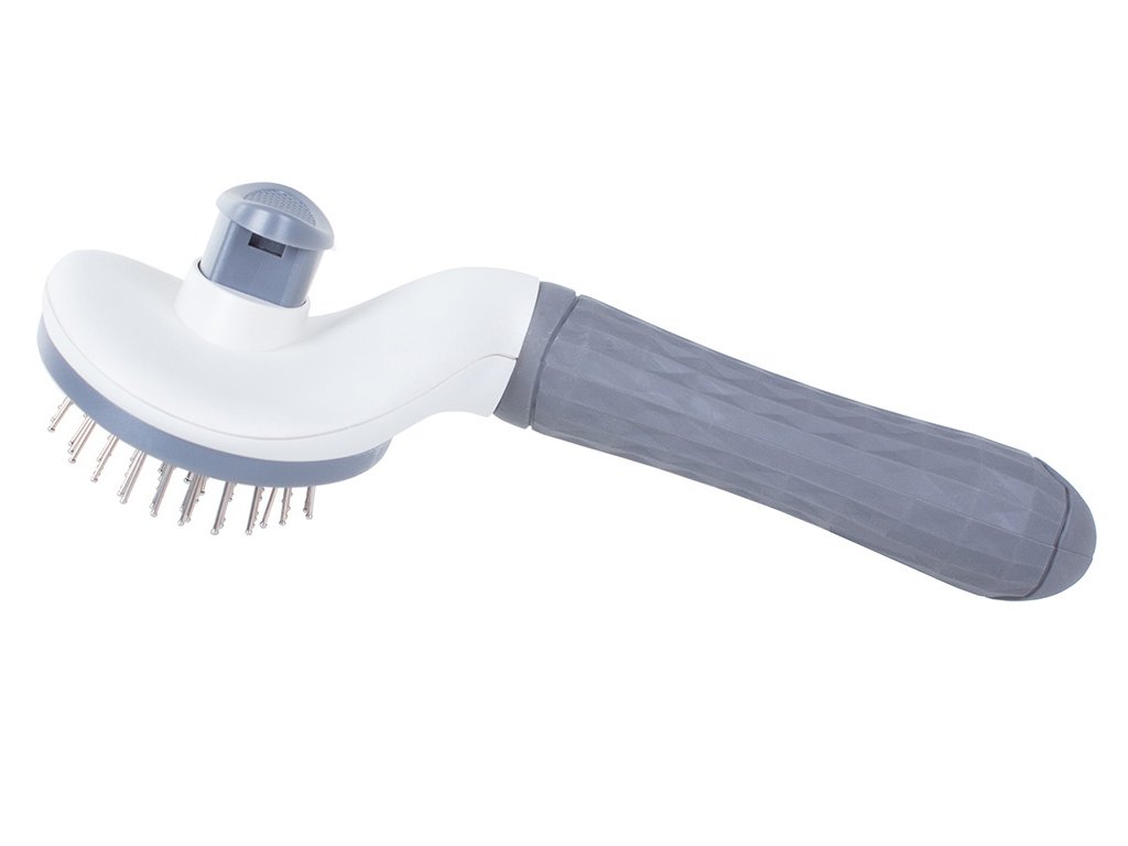 Kartáč má na konci jehly zakončené kuličkou , abyste při česání zvířeti neublížili a vyčesávání bylo příjemné.rukojeť je vyrobena z gumy a neklouže vám z ruky.