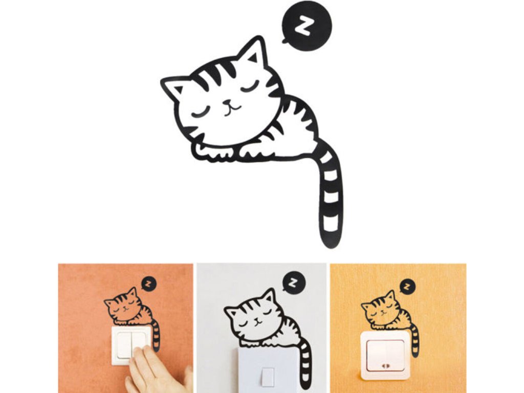 Jste milovníkem kočiček? Kupte si tuto roztomilou samolepku na vypínač kočku, kteoru můžete ozdobit vypínače třeba v dětském pokojíčku. Roztomilou kočičku můžete nalepit i kamkoliv jinam, stačí jednoduše odlepit fólii a vinylovou samolepku nalepit na vybrané místo. Uvidíte, že hlavně děti tuto krásnou samolepku ocení. Spící kočička bude nyní pořád s Vámi. Samolepka na vypínač kočka je originální dárek do domácnosti.