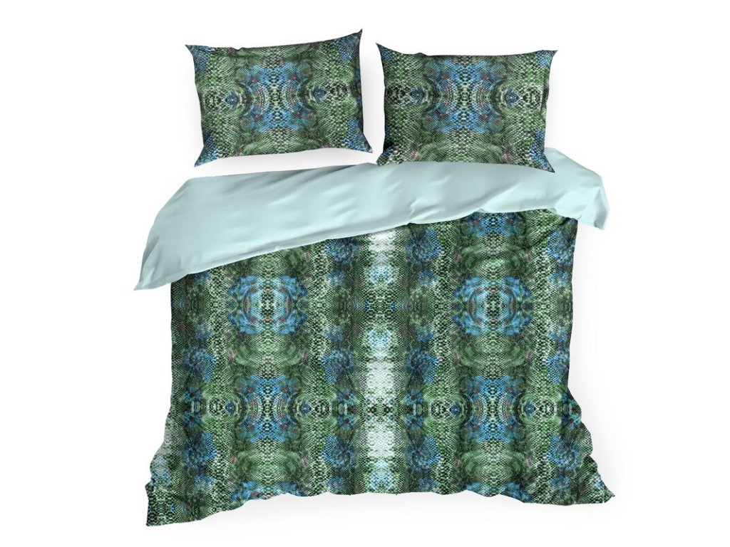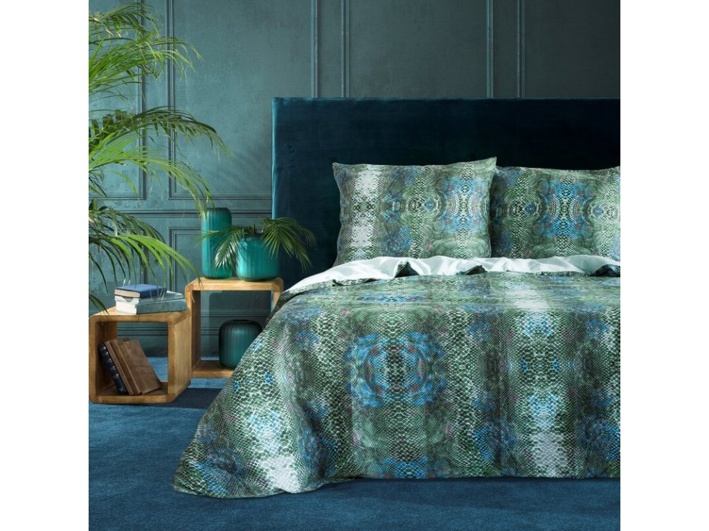Ložní souprava z bavlněného saténu s potiskem Šířka: 160 cm, délka: 200 , 2 ks. 70 cm, barva: zelená, gramáž: 125 GSM, složení: satén 100% bavlna