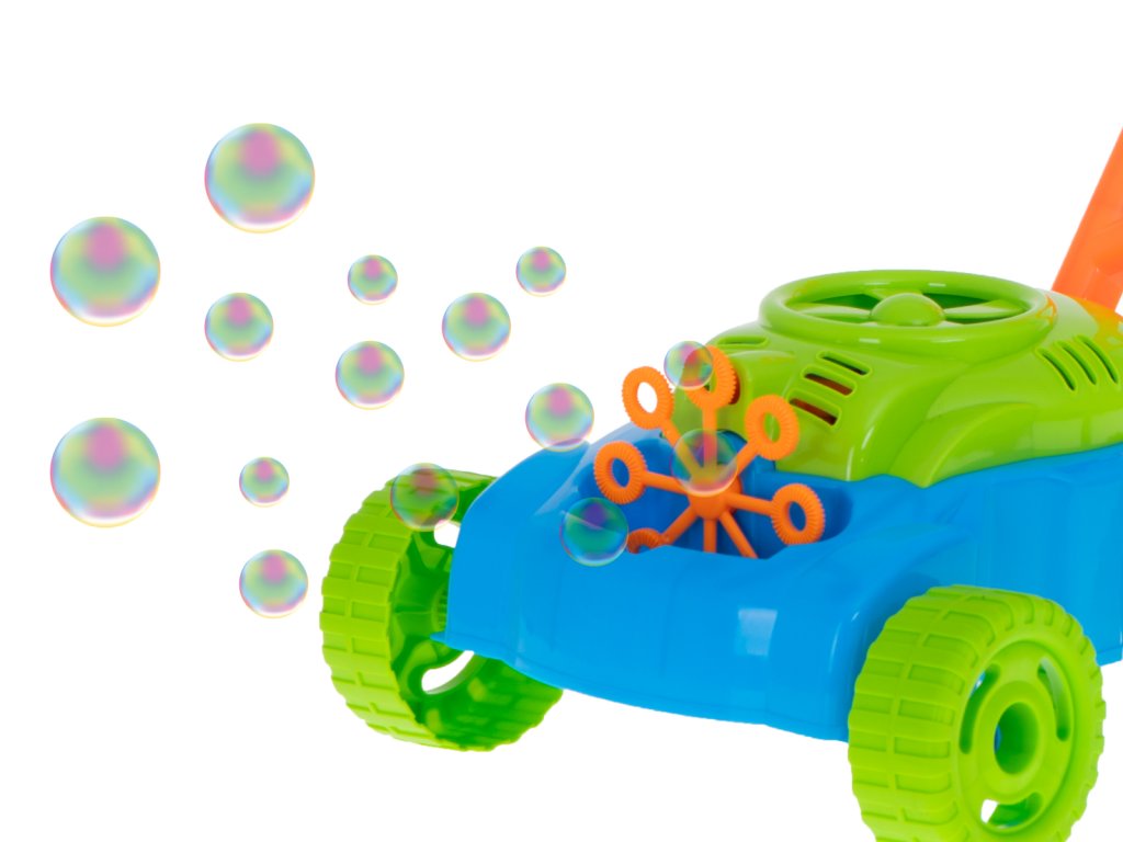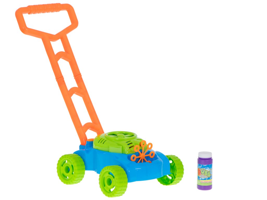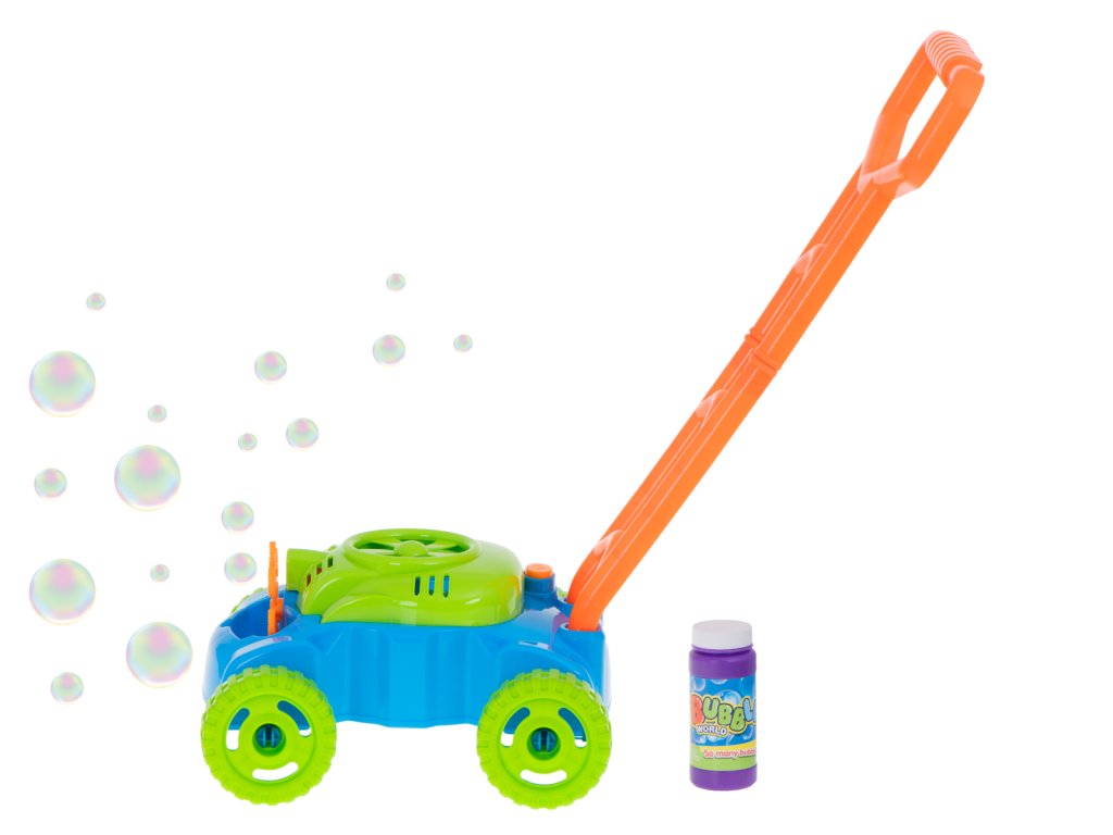 Bublinový stroj v podobě tlačné tyče, který vypadá jako skutečná sekačka, ukradne srdce každému malému dítěti.