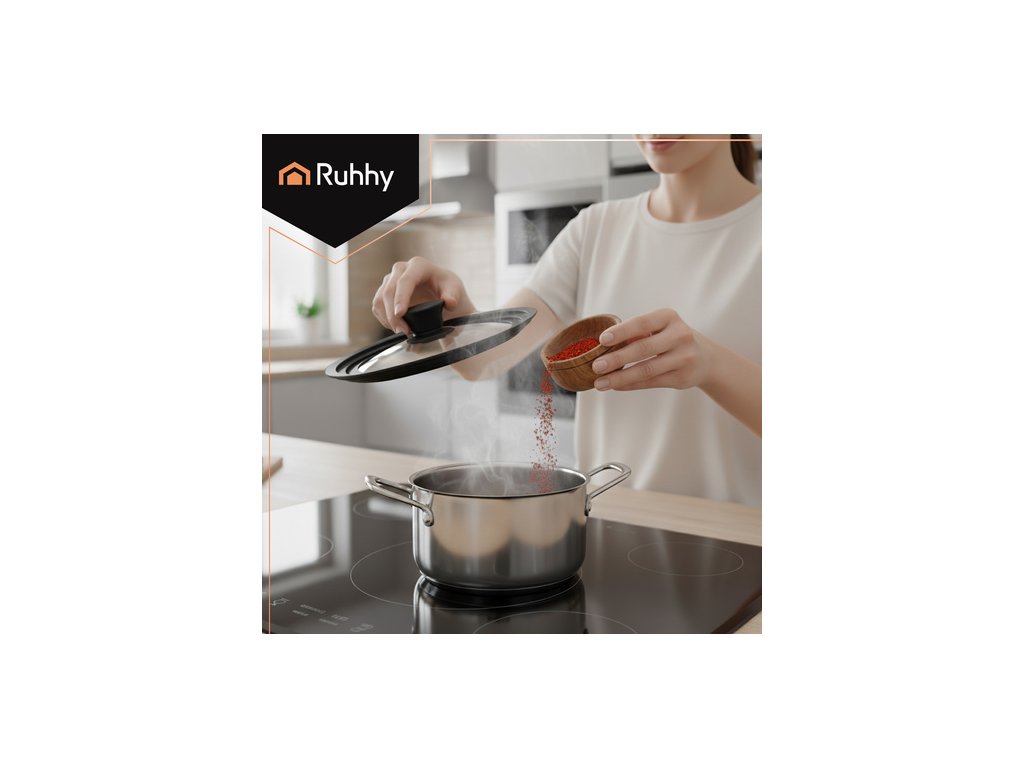 Univerzální poklice Ruhhy 3 v 1 je praktické řešení, které nahrazuje několik běžných poklic. Díky třem průměrům se přizpůsobí různým hrncům a pánvím, čímž šetří místo v kuchyni a usnadňuje vaření. Její robustní konstrukce z tepelně odolného skla a silikonu zajišťuje odolnost, bezpečnost a snadné použití.