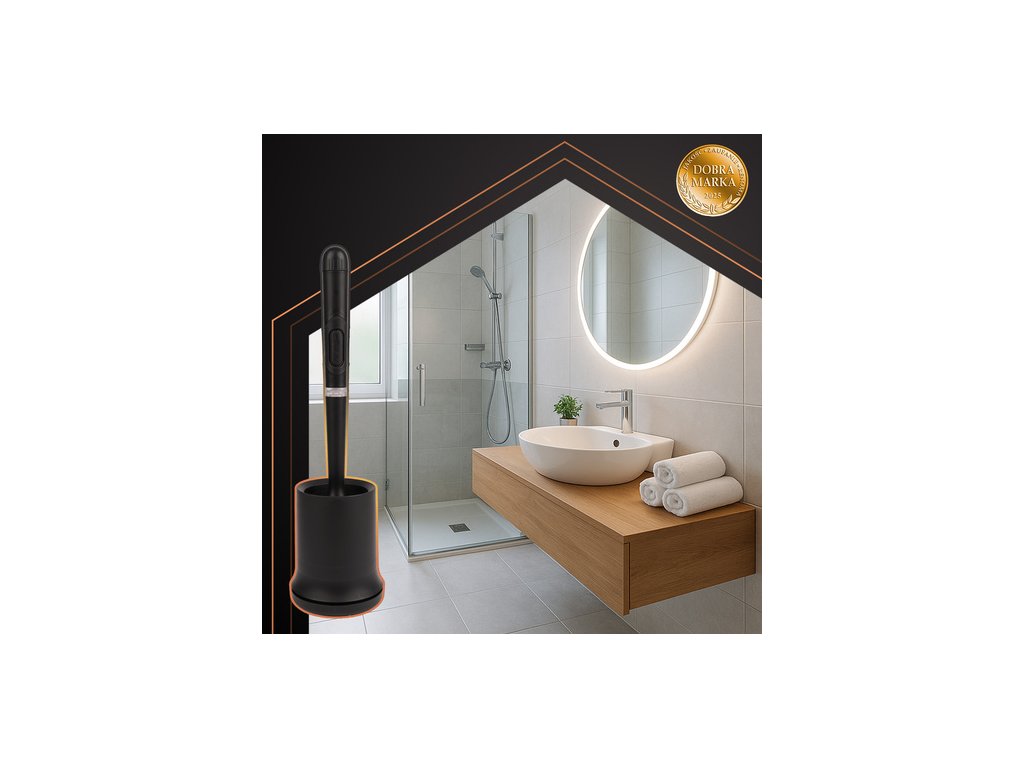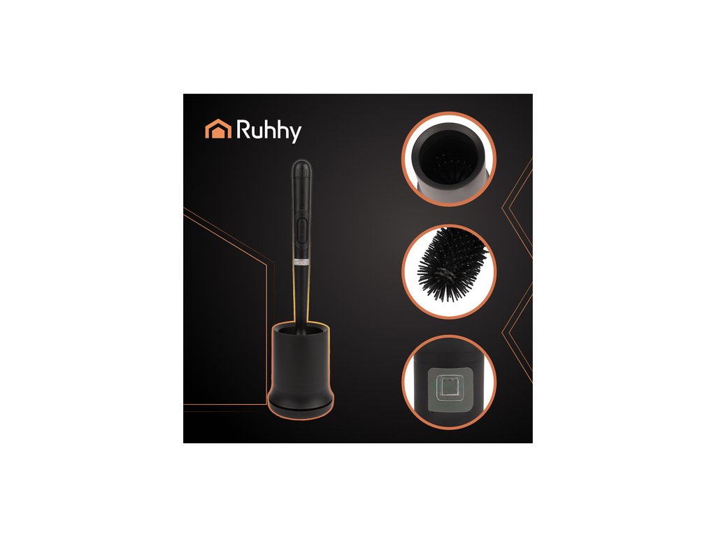 Kartáč RUHHY s gumovou hlavicí a ventilovaným pouzdrem Zajišťuje efektivní čištění bez stříkance a nepříjemných pachů . Je vybaven dlouhou rukojetí a závěsnou nádobou a v sobě spojuje pohodlí, hygienu a estetiku v jednom praktickém doplňku do každé koupelny.