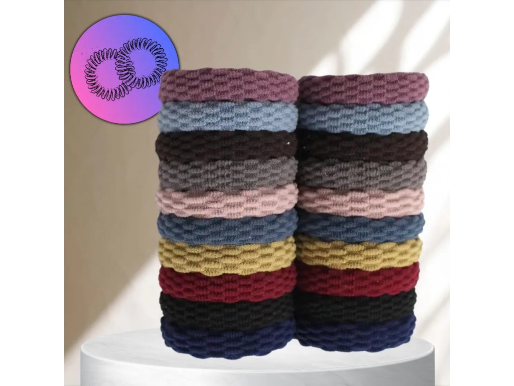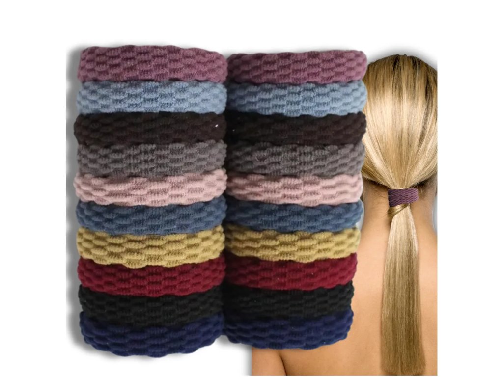 Tato sada 20 silných a pružných gumiček do vlasů je ideální pro každodenní použití. Každá gumička má šířku 4,5 cm a tloušťku 1,2 cm, což zaručuje pevné uchopení i těch nejtěžších vlasů. Jsou vyrobeny z pružného plastu, který je odolný proti opotřebení a zároveň jemný k vlasům.