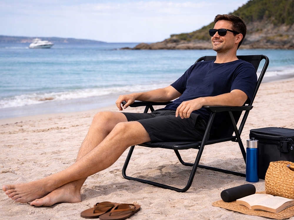 Židle se osvědčí v mnoha situacích a nabízí pohodlí a funkčnost pro každodenní použití. Ideální na pláž, kemp, zahradu nebo balkon. Univerzální konstrukce zajišťuje pohodlný odpočinek v různých podmínkách a činí z ní praktické řešení pro každodenní použití.