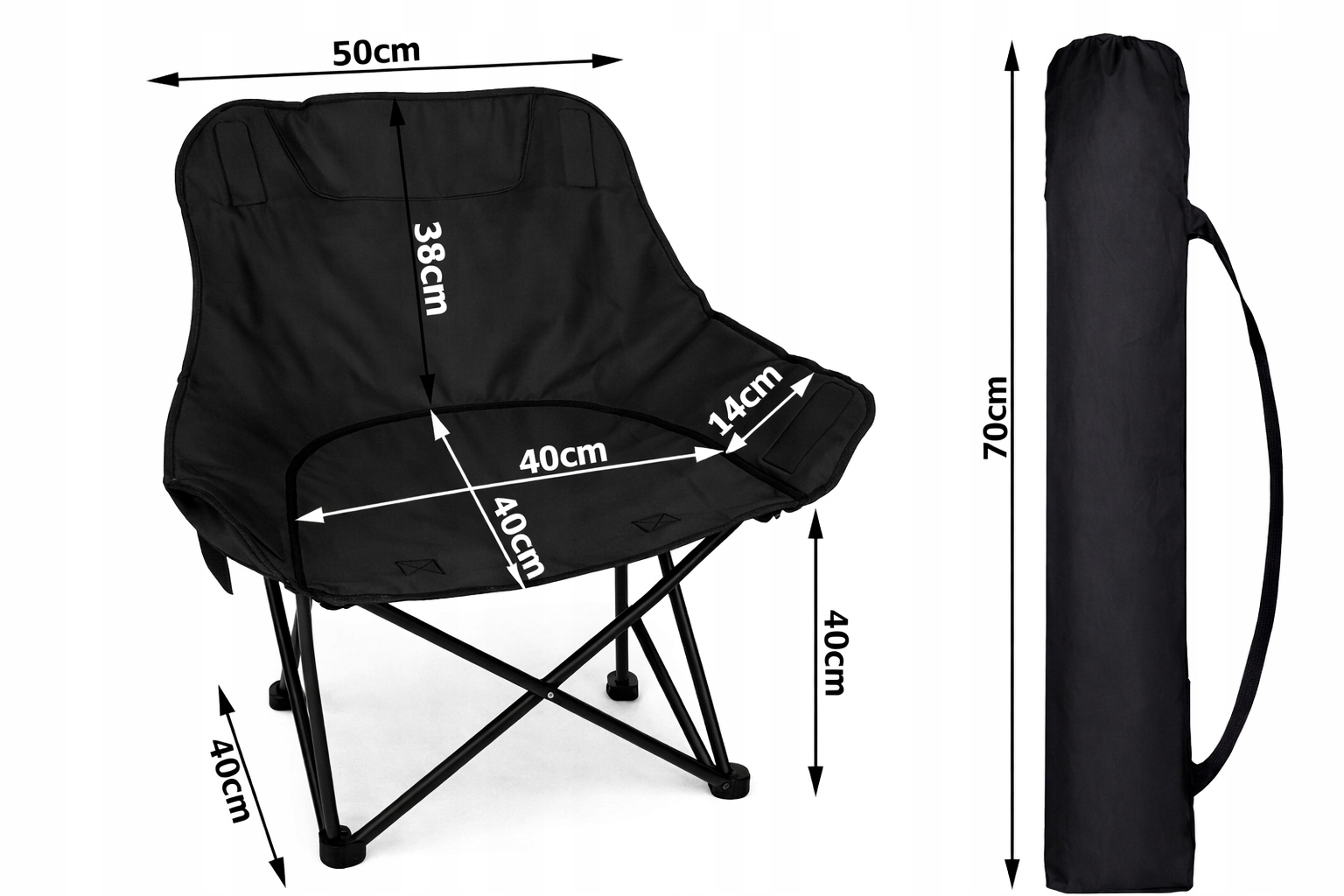 ✅ Výška složeného křesla: 70 cm