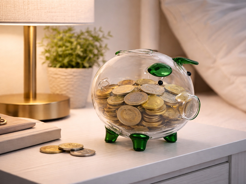Hledáte estetický způsob, jak ukládat úspory, který zároveň potěší oko každý den. Skleněná pokladnička ve tvaru prasátka se perfektně hodí jako prvek každodenní motivace k ukládání peněz. Průhledná konstrukce umožňuje sledovat, jak rostou vaše úspory, což přináší další uspokojení a motivuje k pravidelnosti. Díky svinčíkovému tvaru se produkt hodí jak do moderních, tak do klasických interiérů. Je to praktická volba pro vás nebo jako promyšlený dárek.